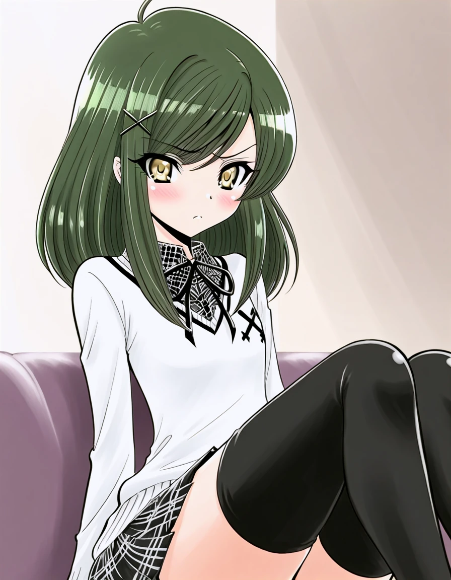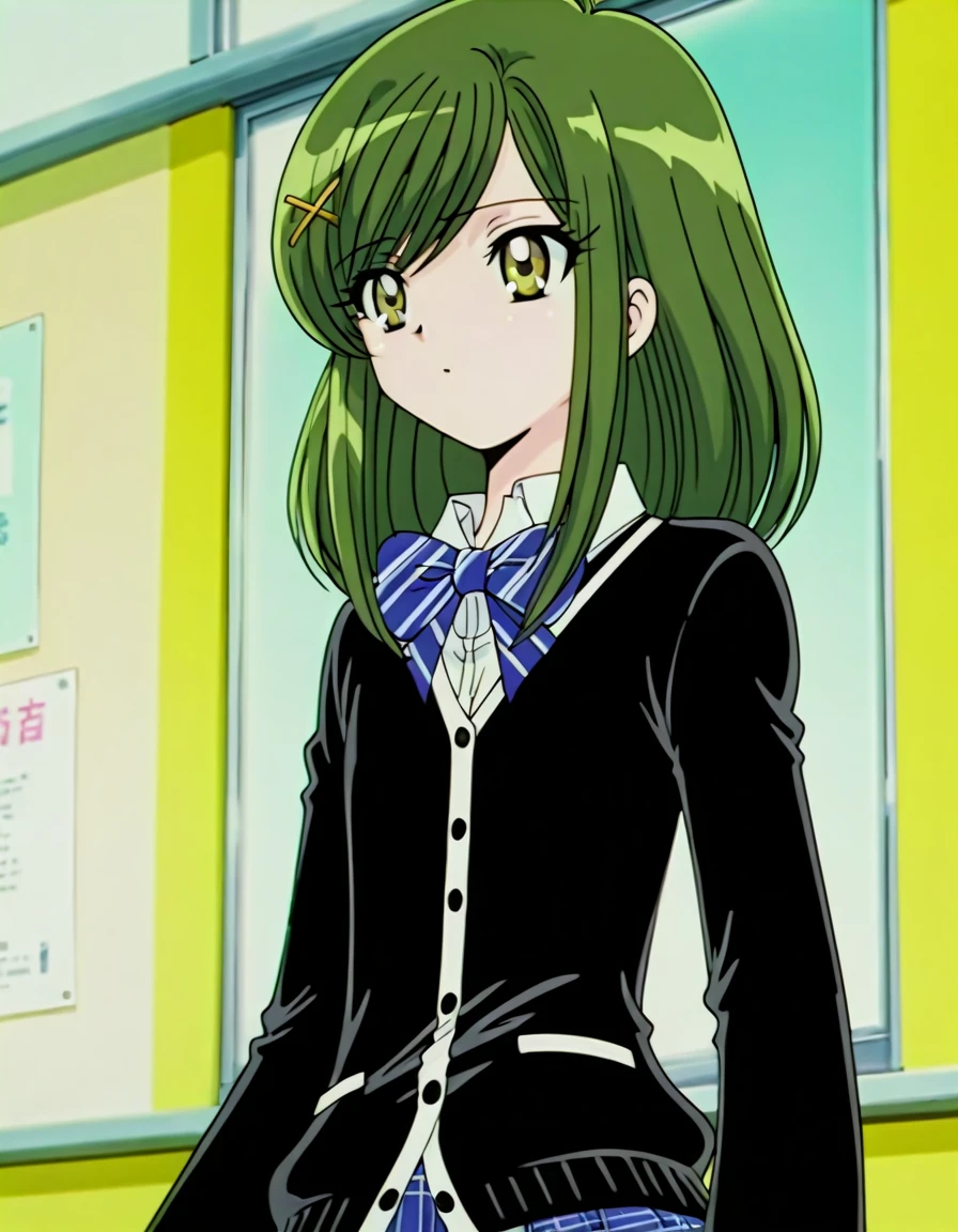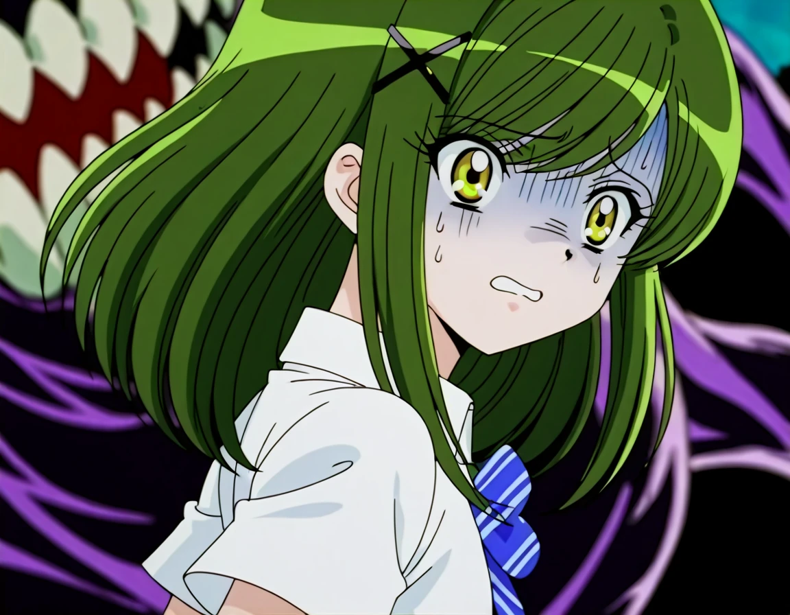 tachibana yuria, green hairRecommended: Add pale skin to Negative.(The skin is often pale because of the monochrome training data)