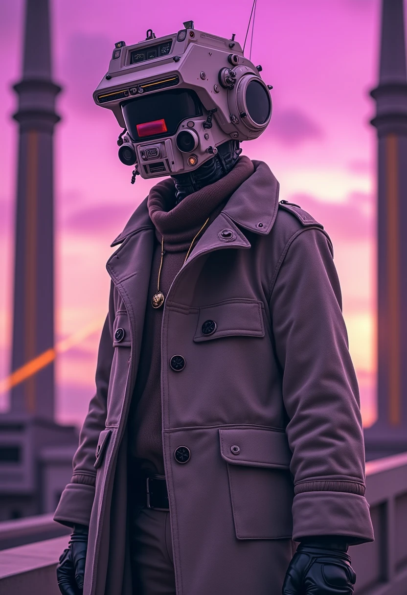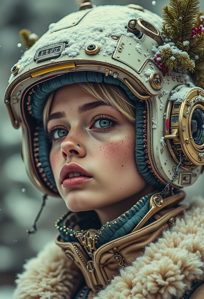 “Cybernetic,” “futuristic armor,” “robotic enhancements,” “helmets,” “head-mounted display,” “sculptural headpieces,” “vignette,” “cinematic tint,” etc.