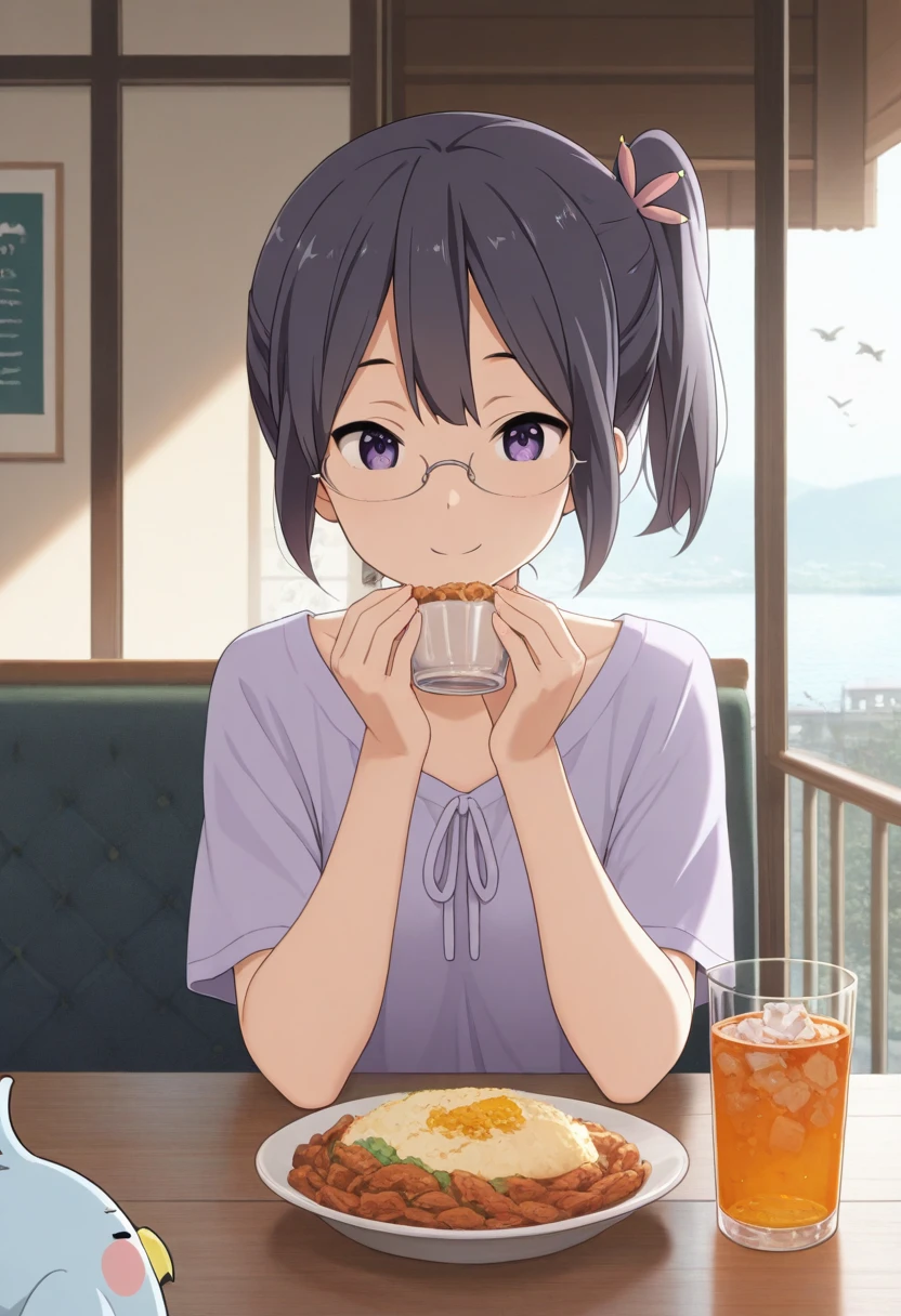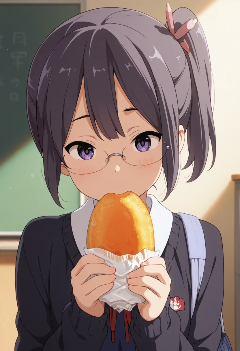 Trigger Words: asagiri shiori, black hair, purple eyes, side ponytail, glasses