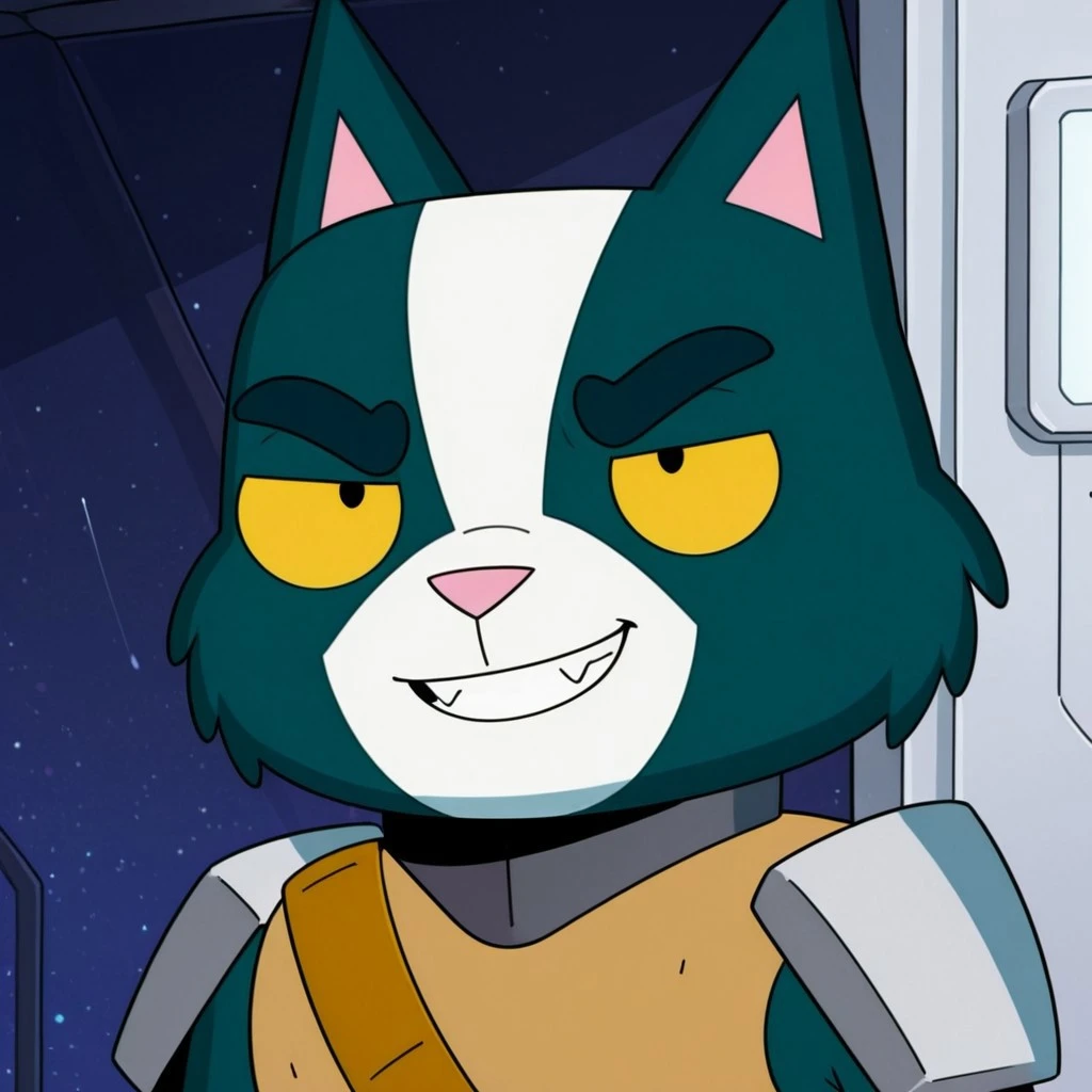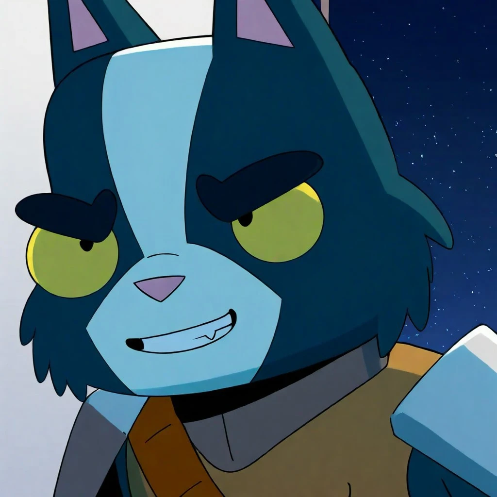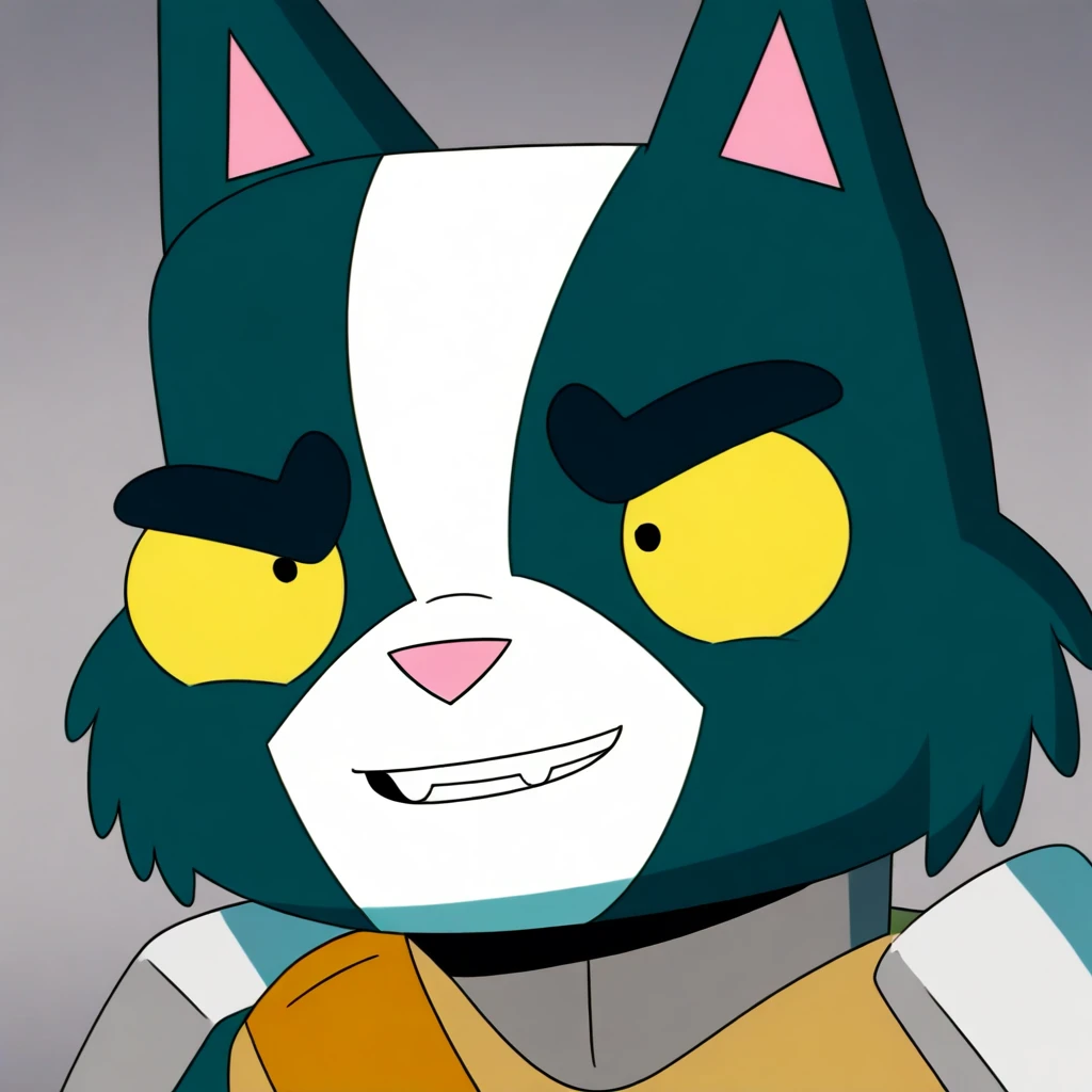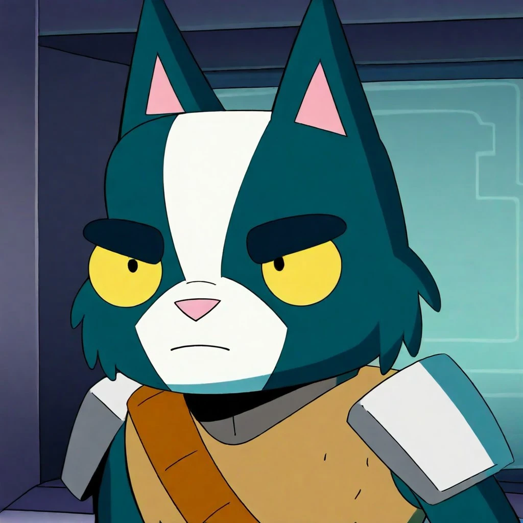 Avocato, furry male, solo, cat, thick eyebrows, pink nose, yellow sclera, black eyes, dark teal fur, white facial markings, tail, boots, grey belt with a silver buckle, greenish leggings, tan vest, pair of the shoulder and knee pads, brown utility sash, arm bracers. sleeveless