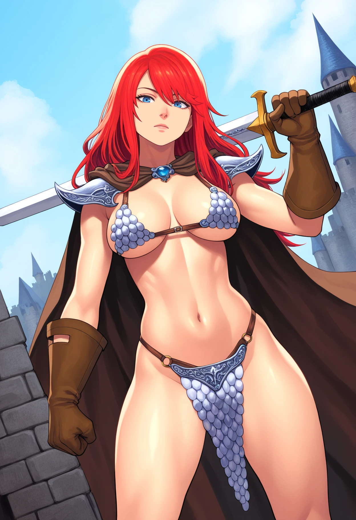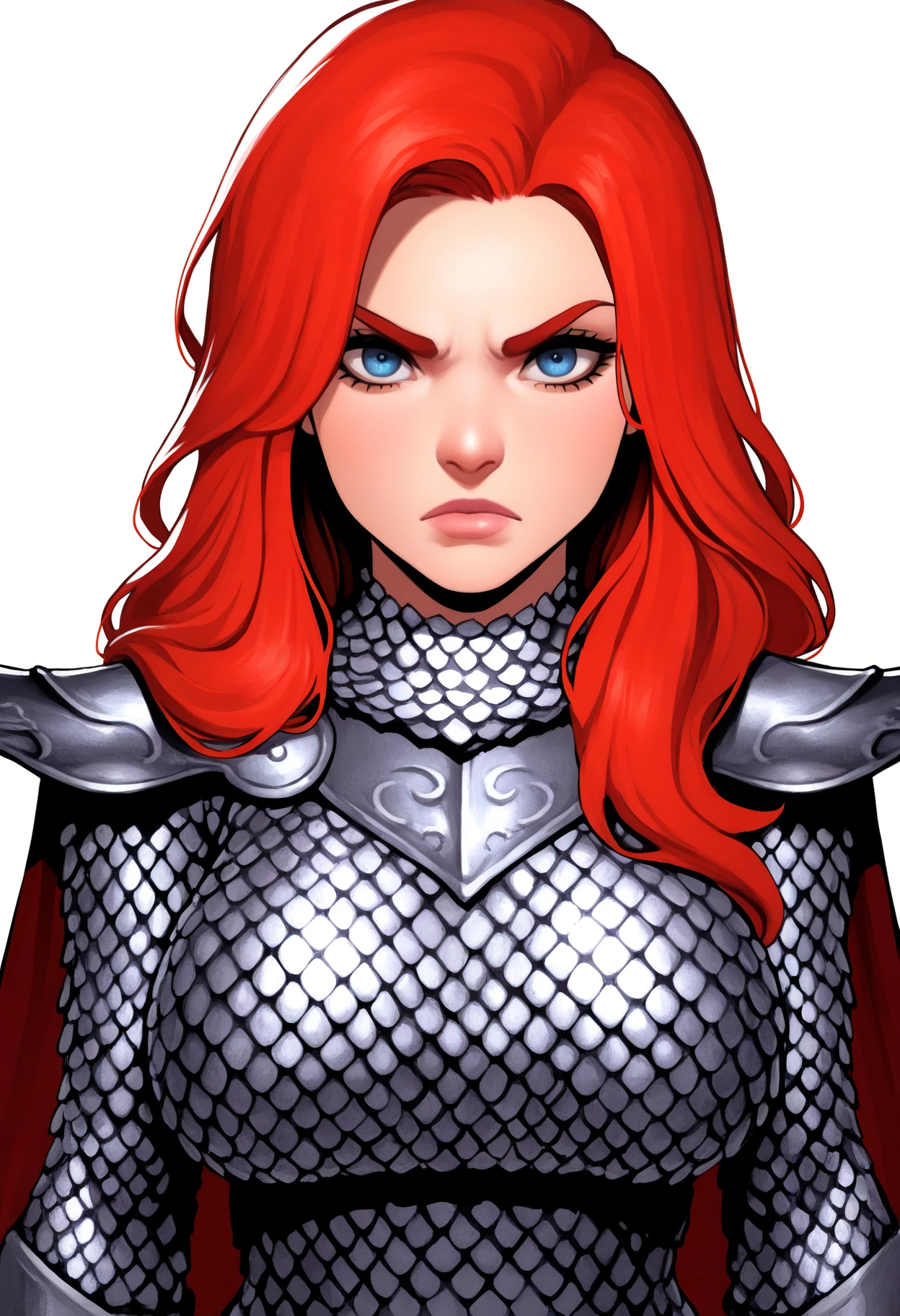 Basic prompts : 1girl, redsonja, red hair, long hair, blue eyes