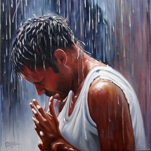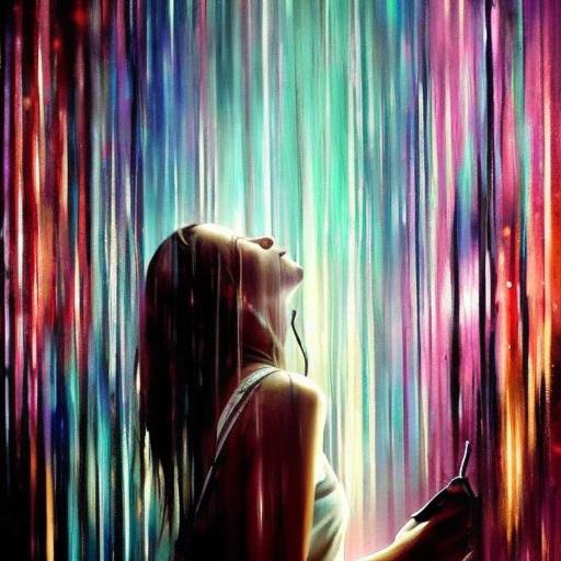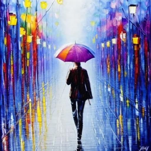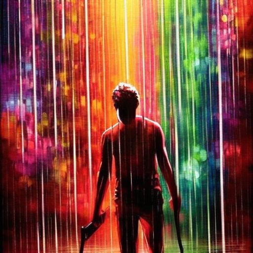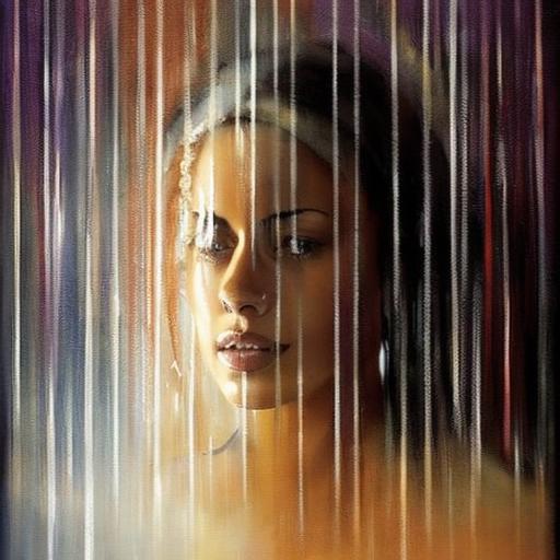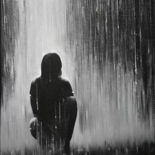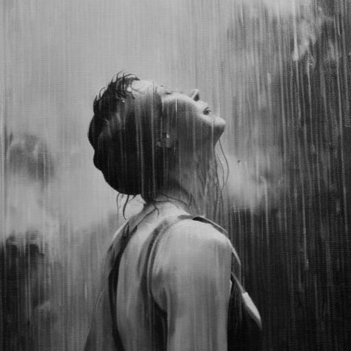 Finetuned for a rain effect on a person. From colorful to black and white. Trained on both males and females. Trained on 1.5. Token is rainey. In a prompt rainey, painting.