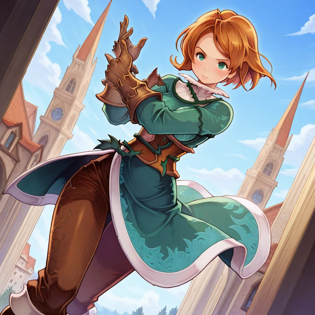 solo,japanese clothes, japanese armor, collared dress, gauntlets, multiple_belts, shoulder_pads, jodhpurs, cross-laced footwear,