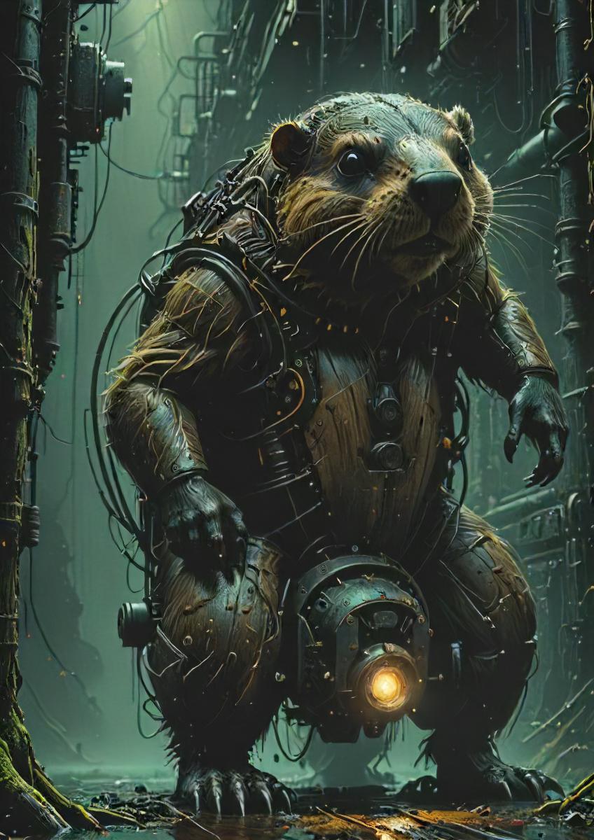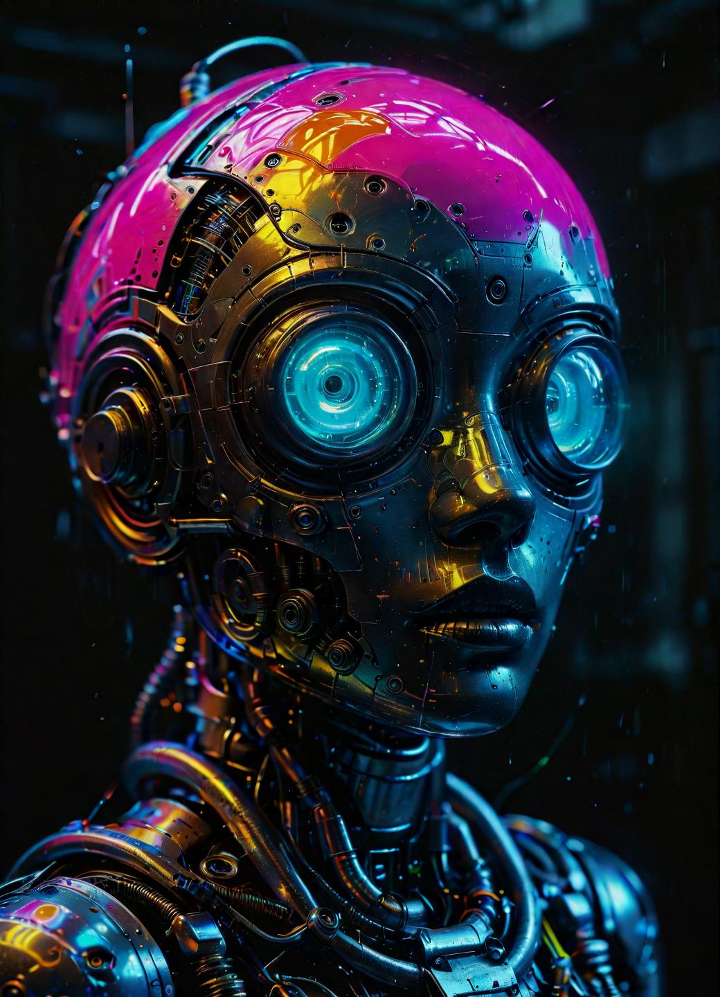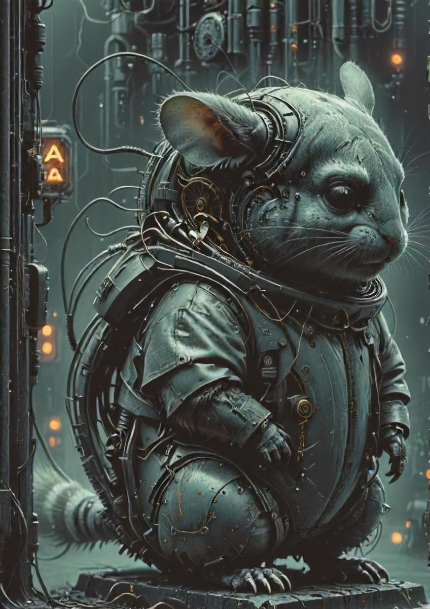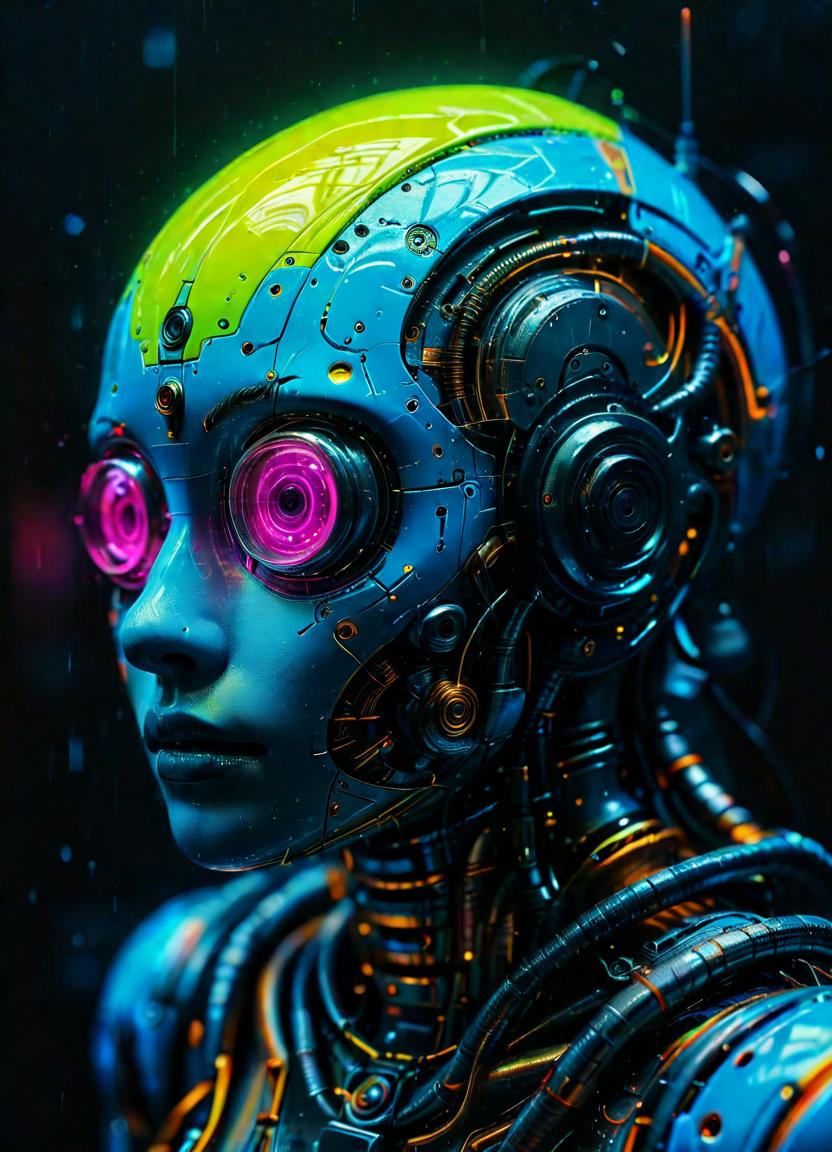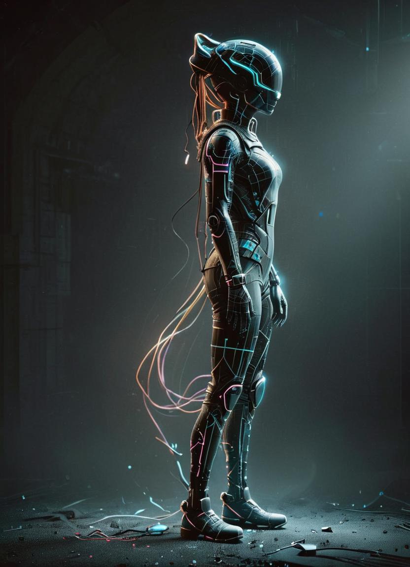 The "Dark Side of the Future" style evokes a dystopian and cybernetic feel, often employing a monochromatic or desaturated color scheme to highlight the fusion of organic and mechanical elements, creating a somber and thought-provoking aesthetic that hints at a complex and possibly ominous future.