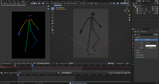 A simple blender file for creating a ControlNet pose. Can create ControlNet pose images for use as animation frames.