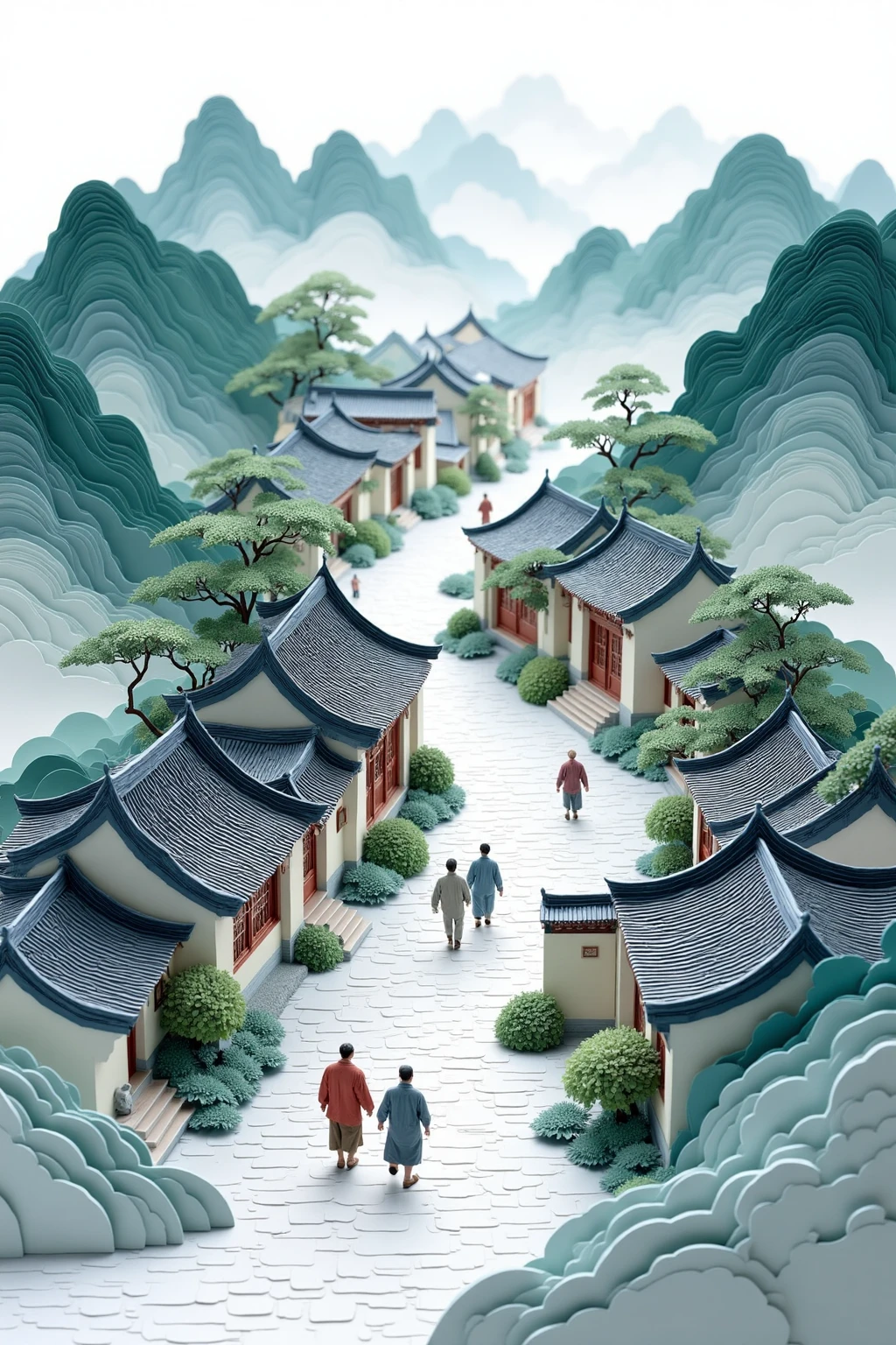 Base Prompt:Paper - cut art with Chinese landscape elements