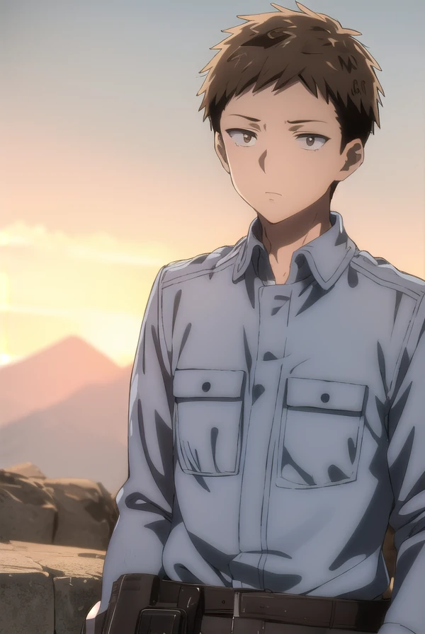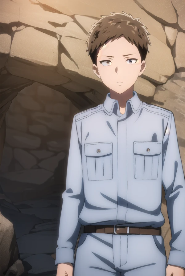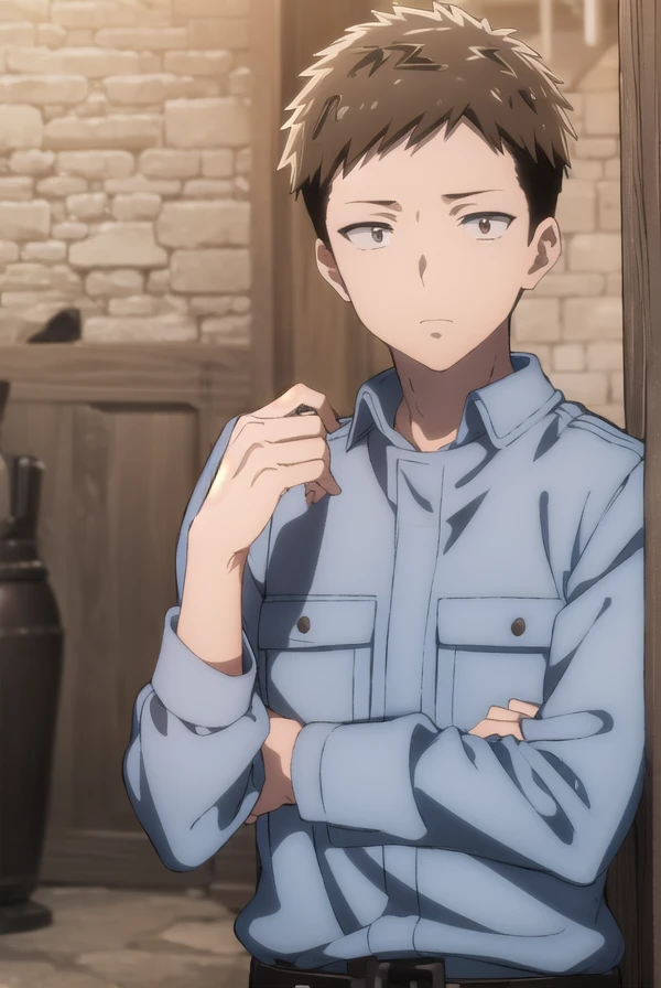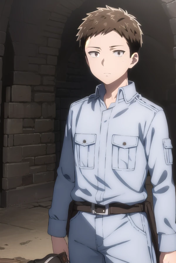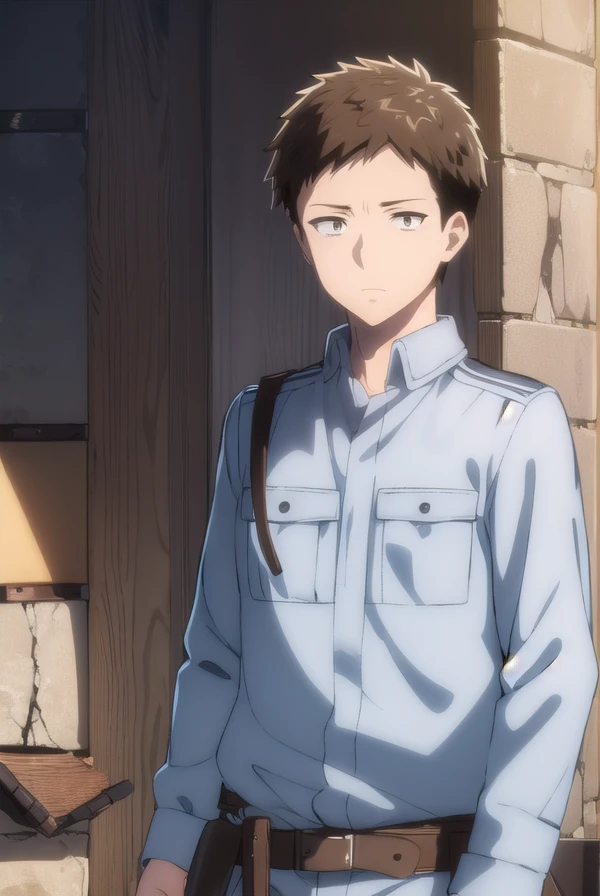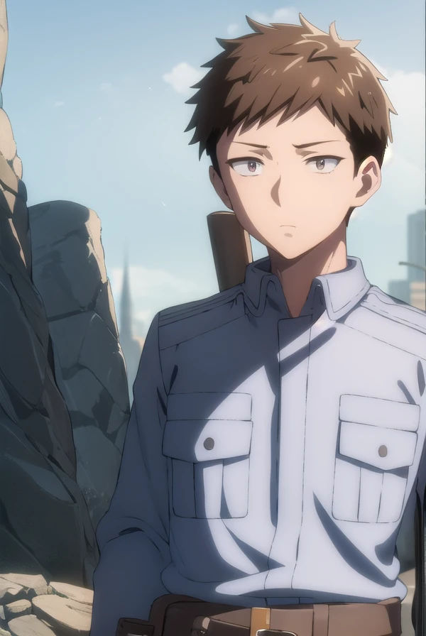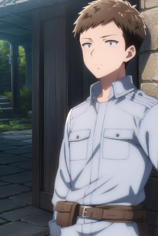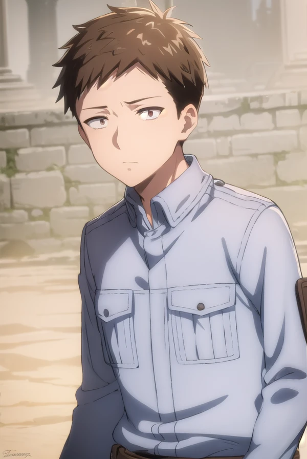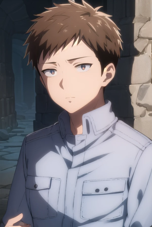 saitou, brown hair, male focus, (brown eyes:1.5),