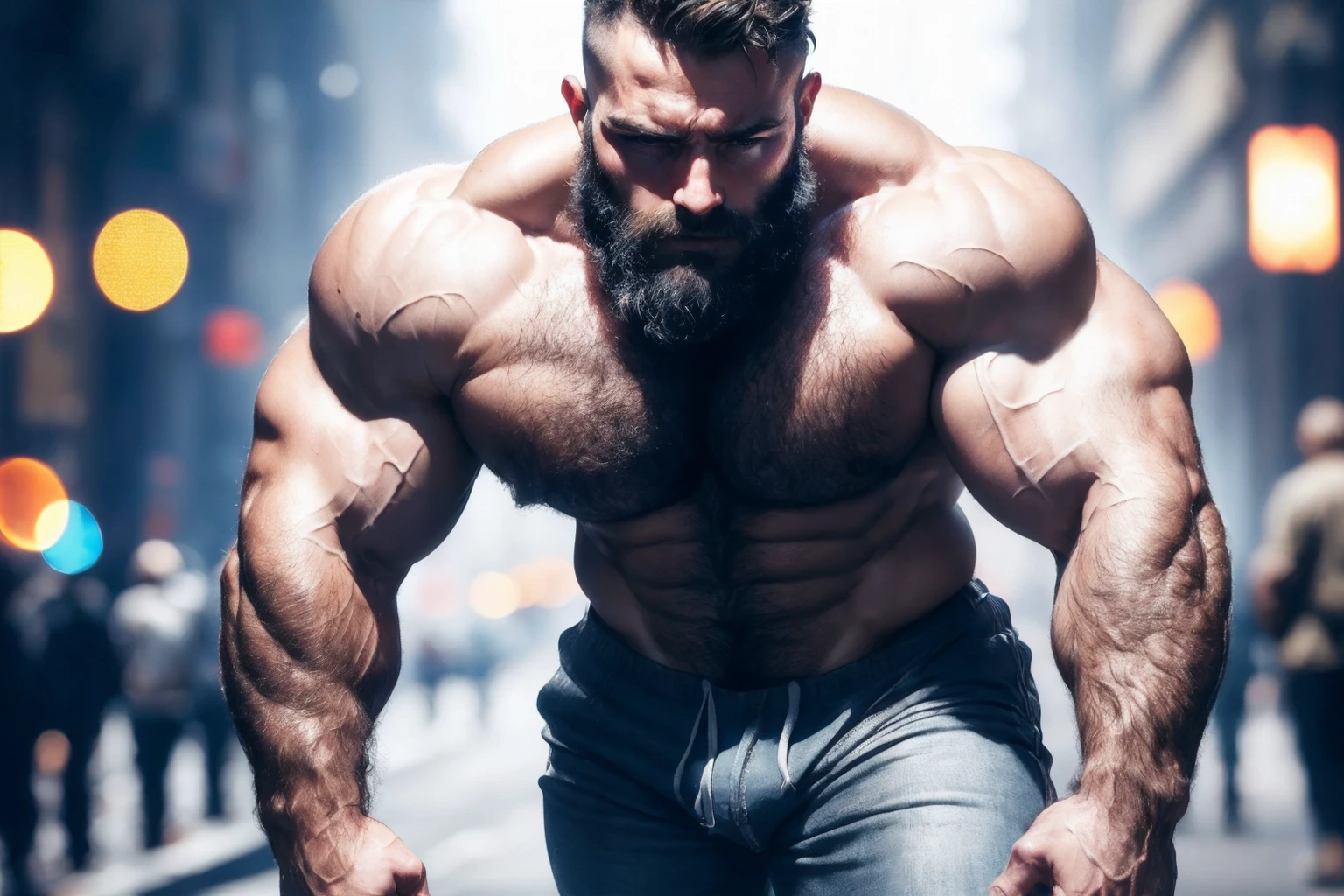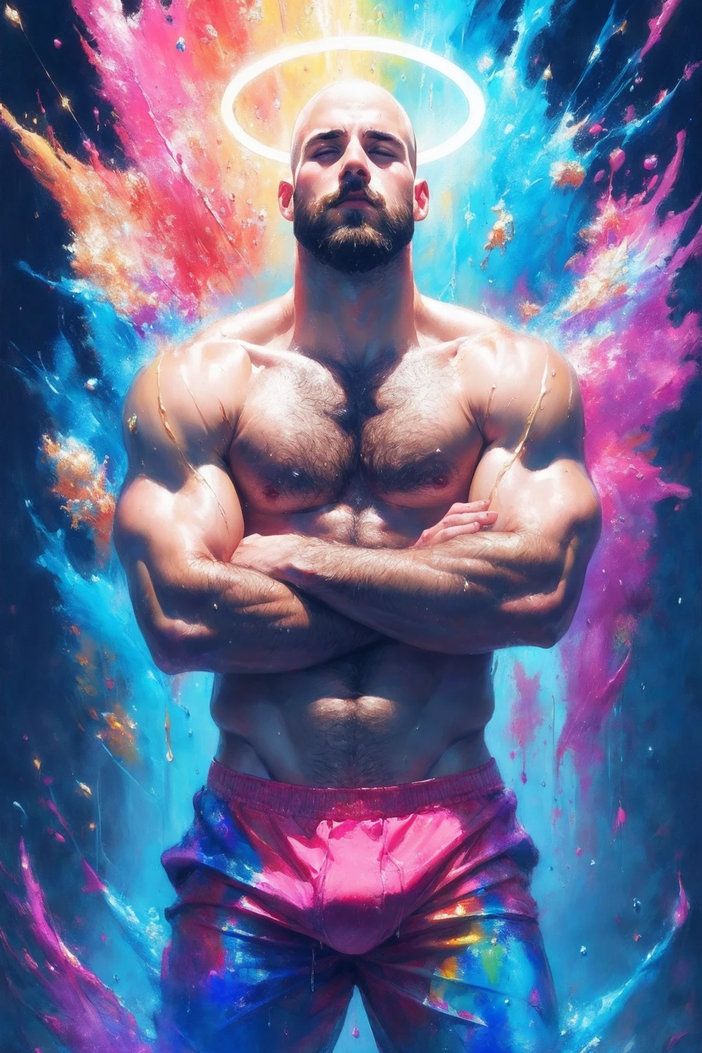 himbo art - (AI anime style with more muscle and round/square face shape, but even though datasets were very different, it ended up a lot like 'niji art')
