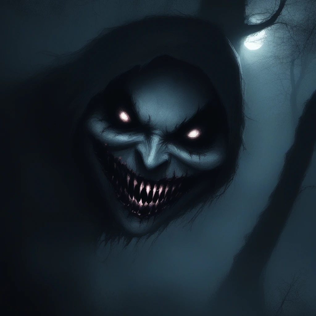 creepy horror, dark blues and grays and blacks, faces, ghastly figures etc