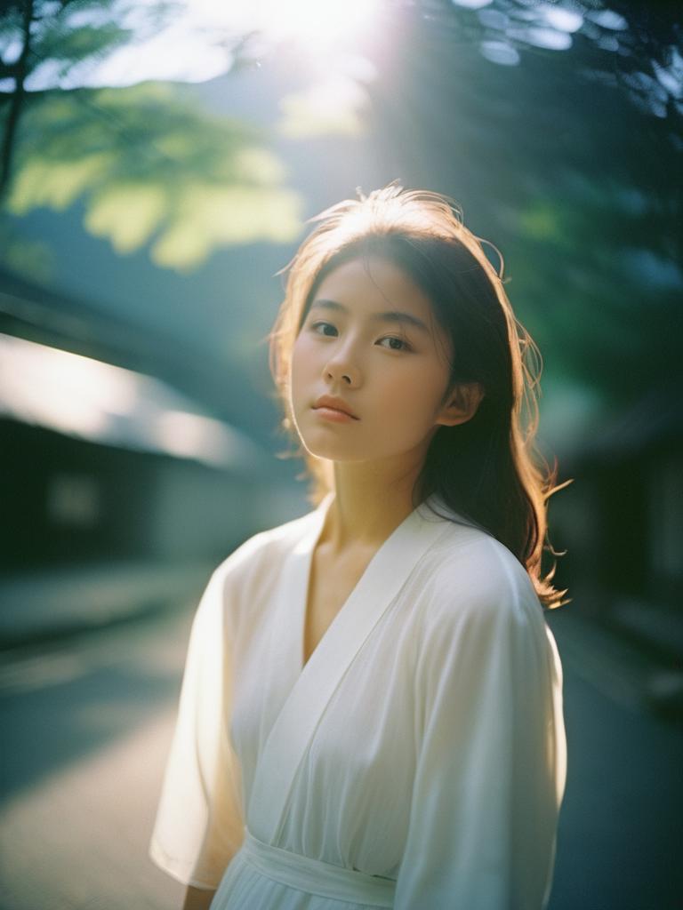 由于大模型和Lora训练时打tag的缘故,测试过程中发现如果使用自然语言的话比较容易出现混血脸(当然加一个1girl有时候也能一定程度上的这个解决问题)。而使用asian等提示词容易出眯眯眼等刻板印象特征。因此我的解决方案是使用by Hideaki Hamada等东亚摄影师风格的提示词,可以相对还原的生成符合东亚审美的脸型。以下是我使用的prompt:
