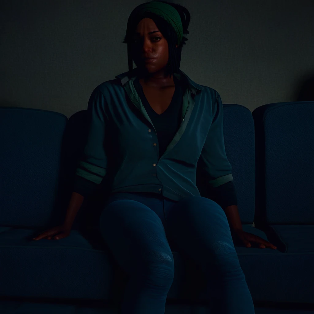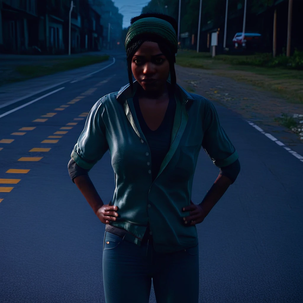 addison_dg, dark-skinned female, black hair, jacket, jeans
