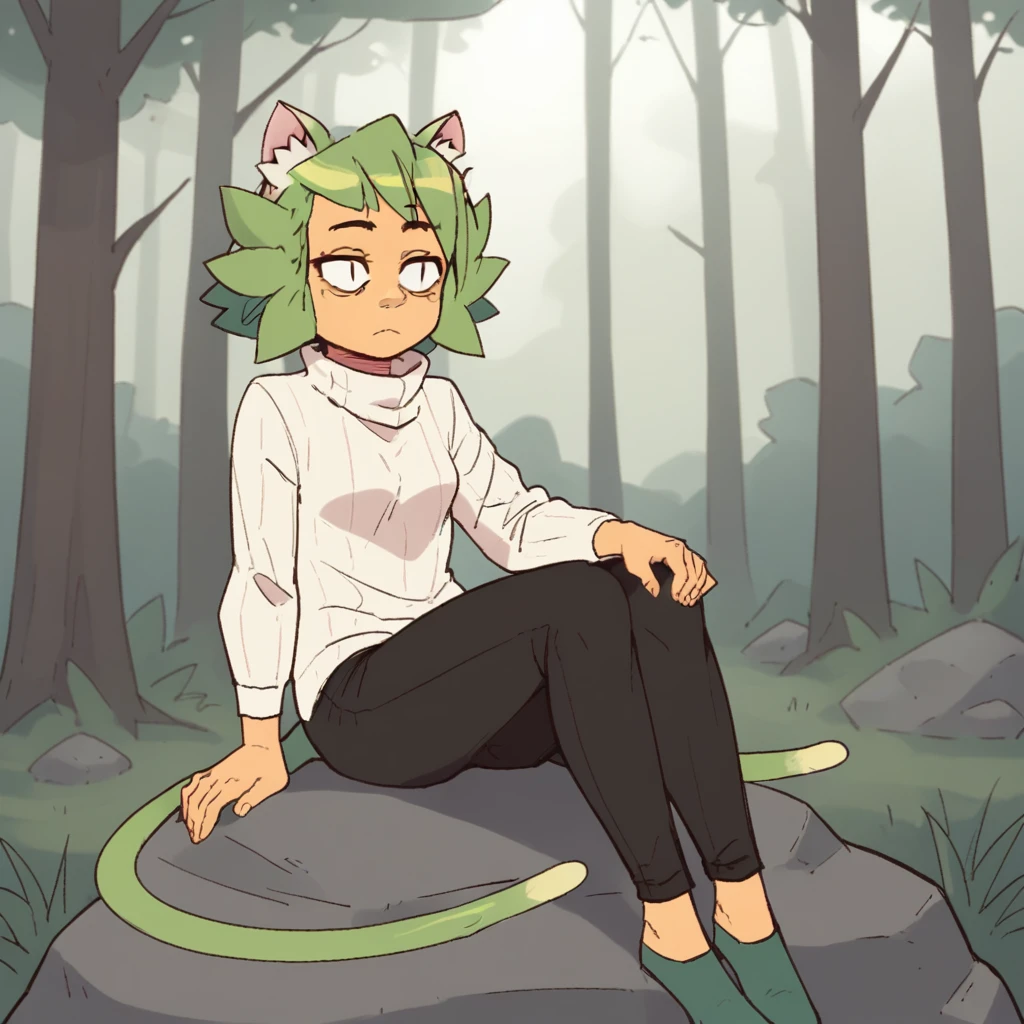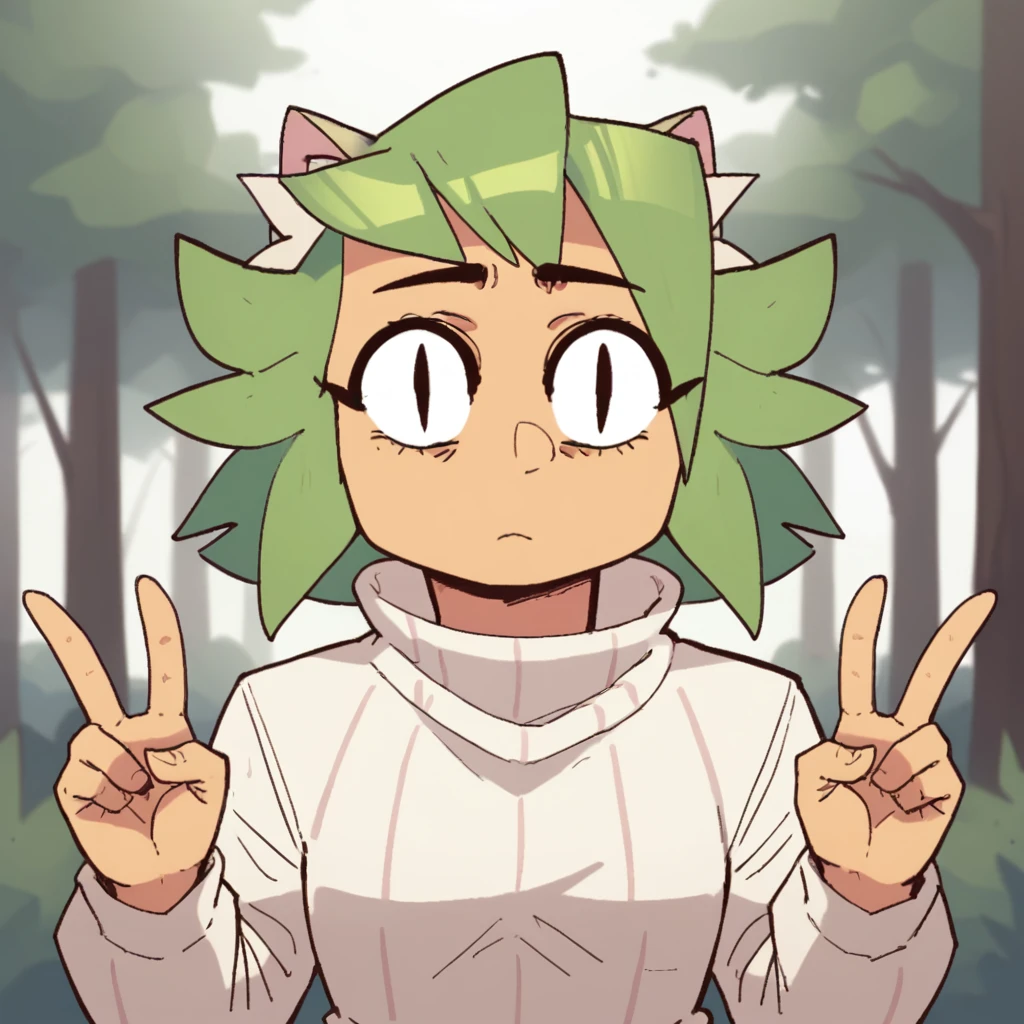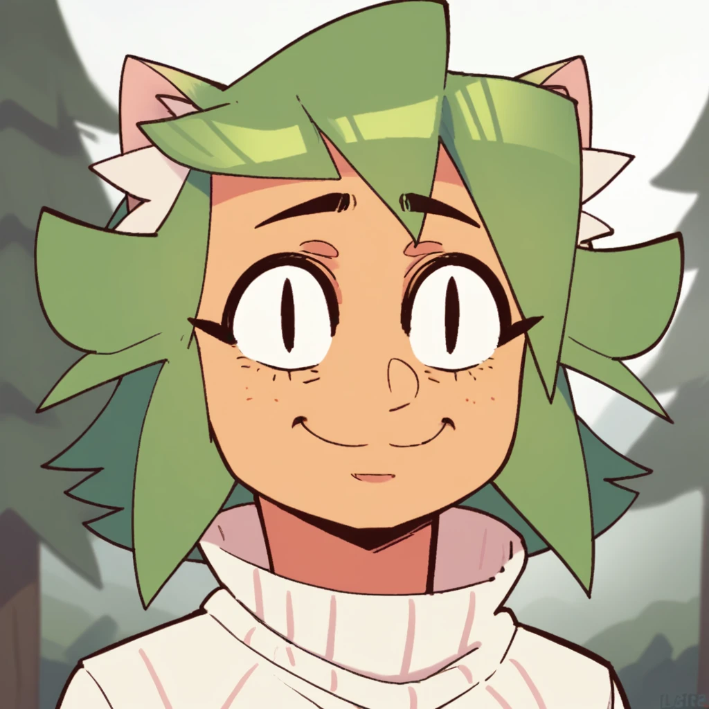 lu, 1girl, solo, green hair, short hair, cat ears, black eyes, slit pupils,