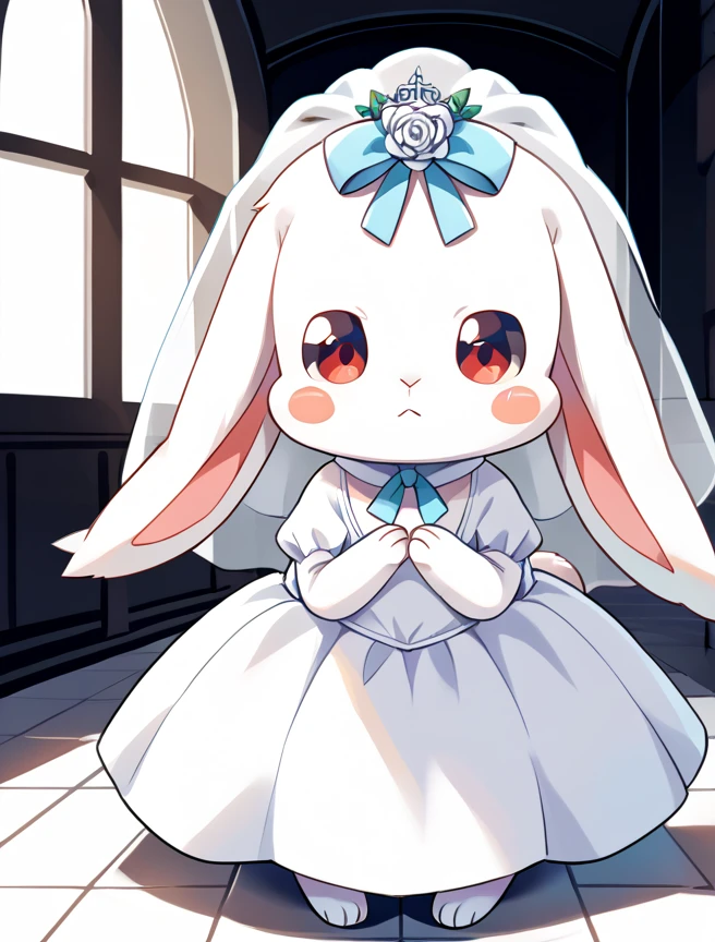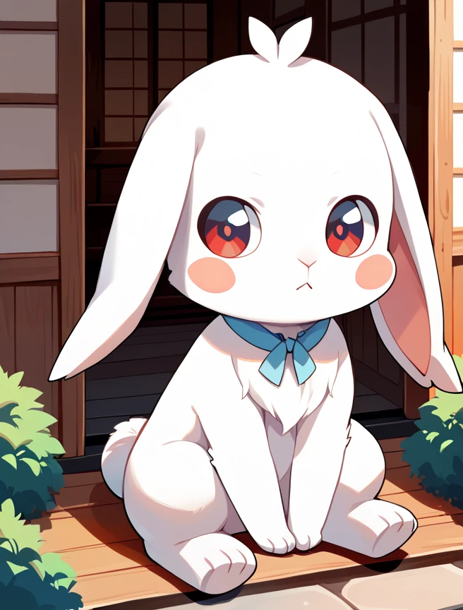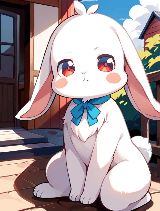 Prompts: daifuku, no humans, rabbit, blush stickers, furry, rabbit tail, bow,