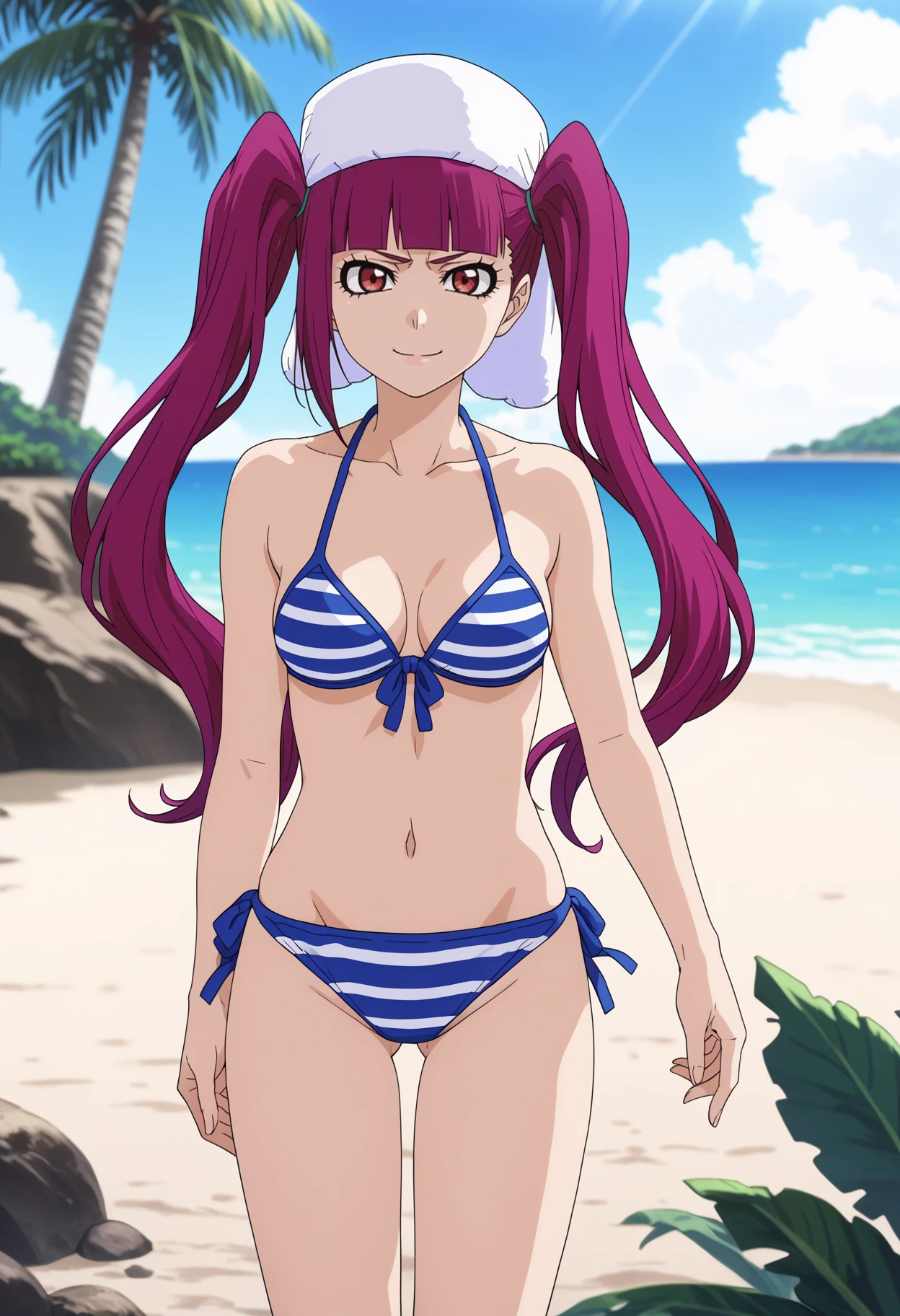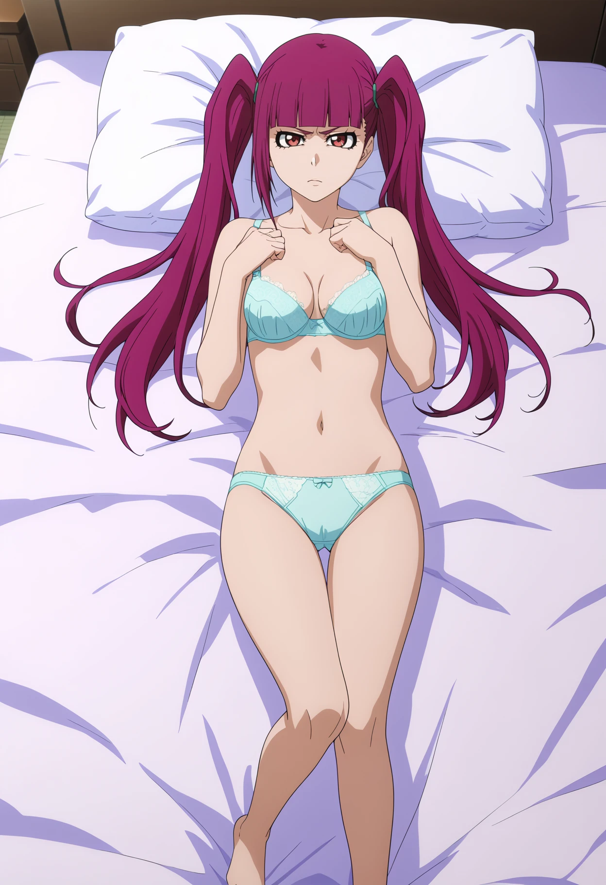 1girl, rirukadokugamine, purple hair, twintails, long hair, red eyes