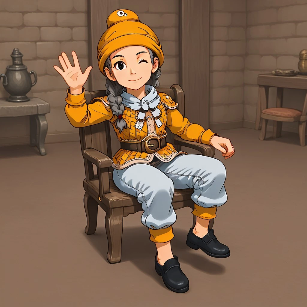1girl,solo,animal hat,single braid,shirt,belt,armor,pants,shoes