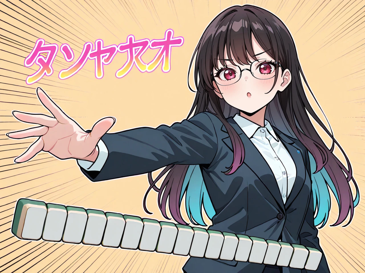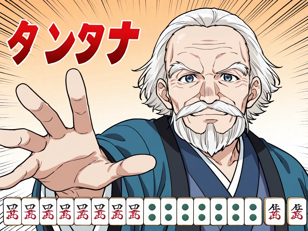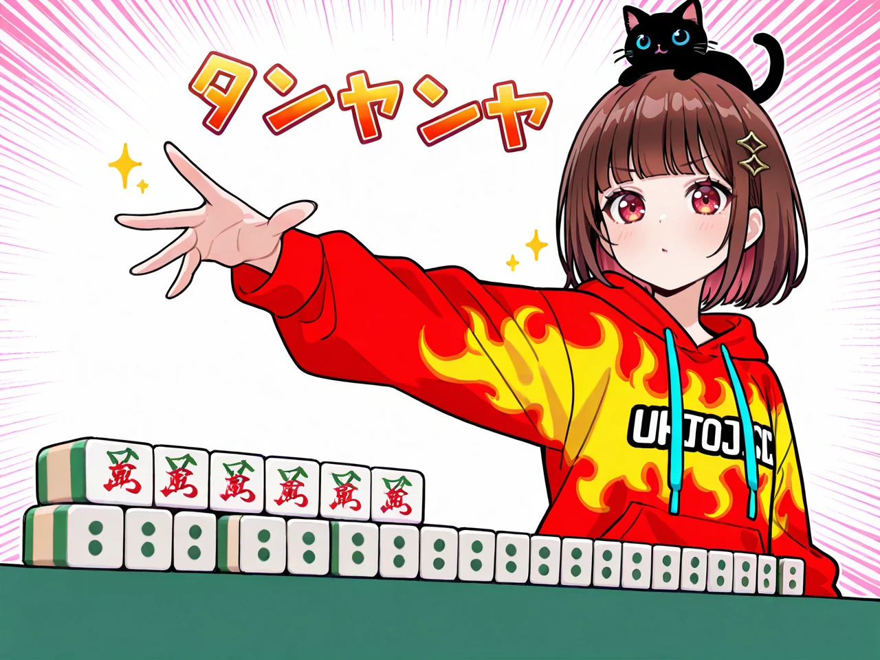 Mahjong hand pattern of Tanyaochuu (断幺九, タンヤオ) with pride pose.