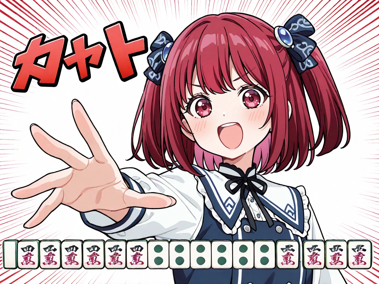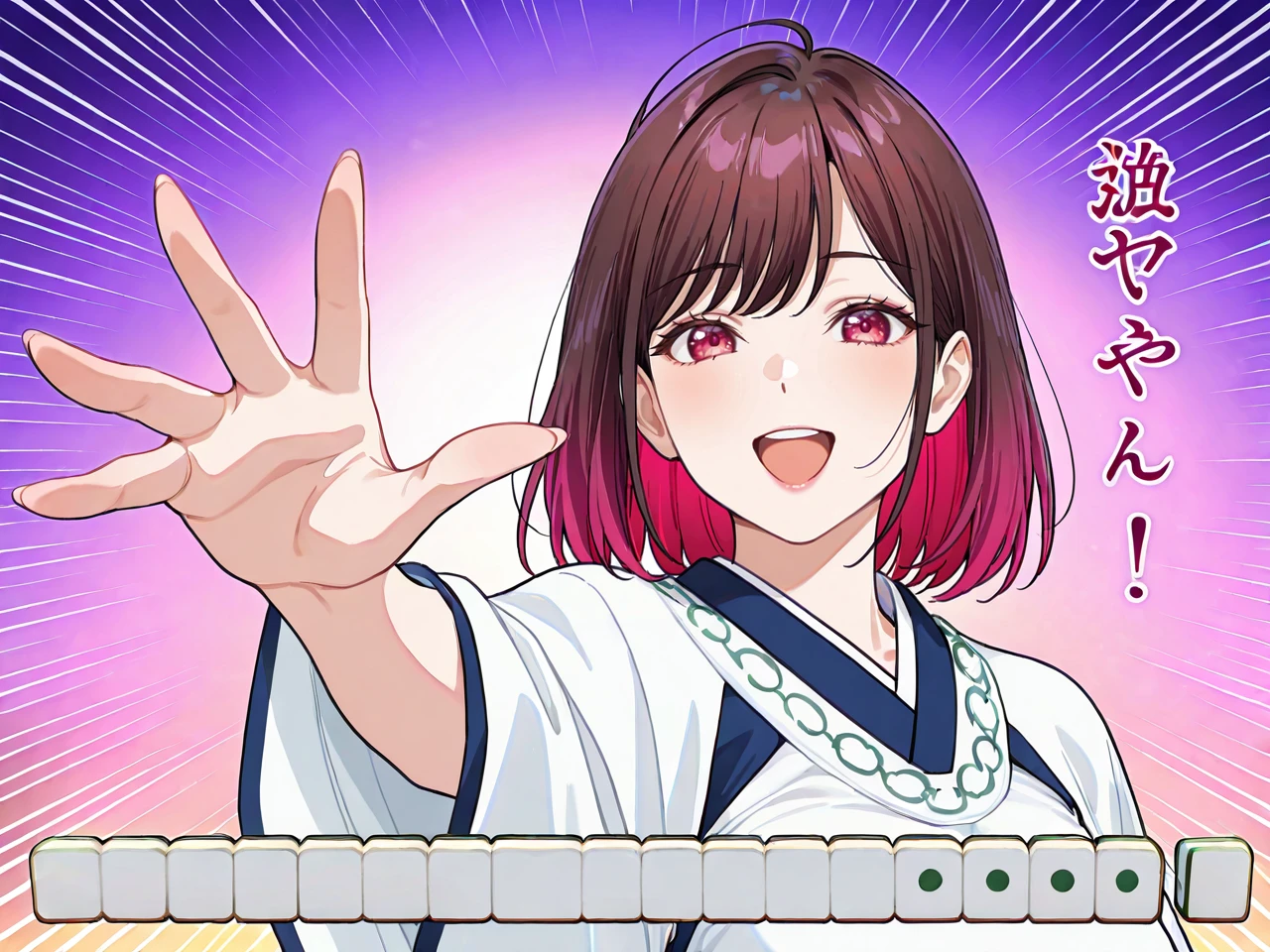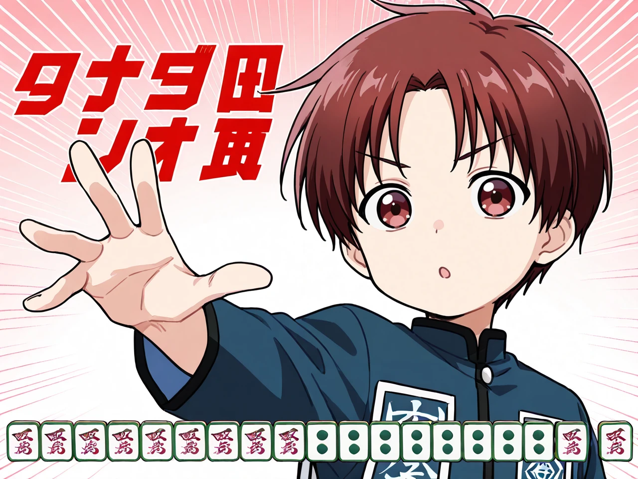 Mahjong hand pattern of Tanyaochuu (断幺九, タンヤオ) with pride pose.
