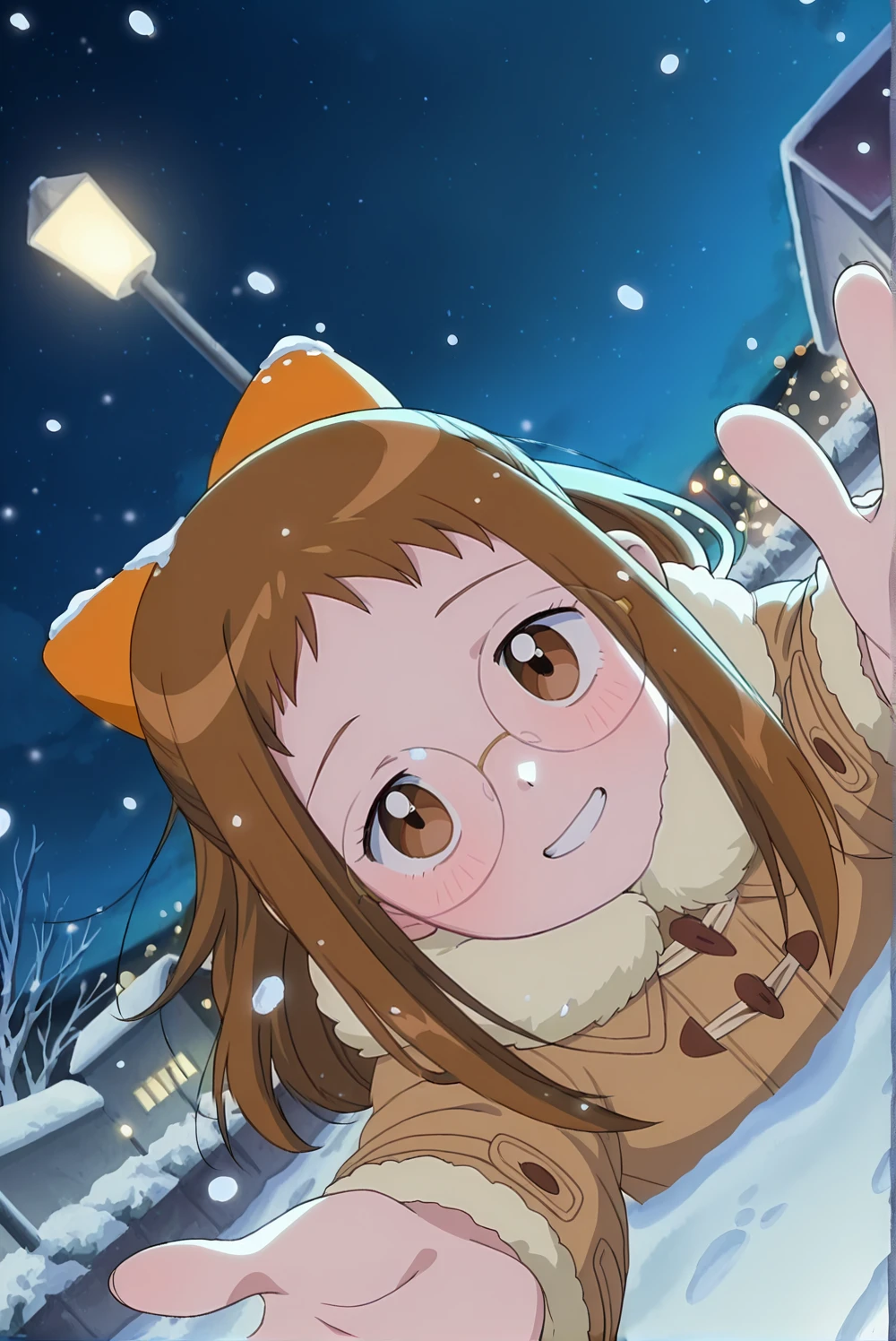 Basic: hazuki-fu, 1girl, brown hair, glasses, brown eyes, hair bow