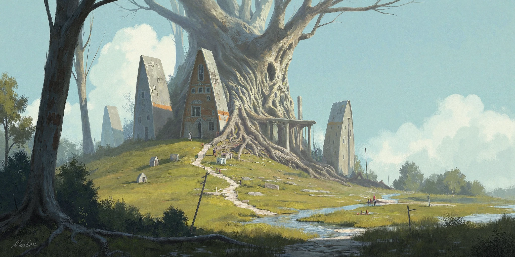 Retro concept European and American game scene design, which can also be used as hand-painted materials for object or scene transfer drawing.