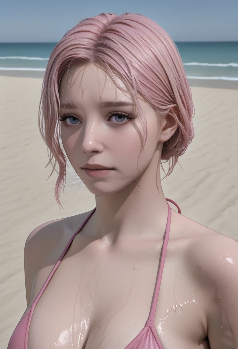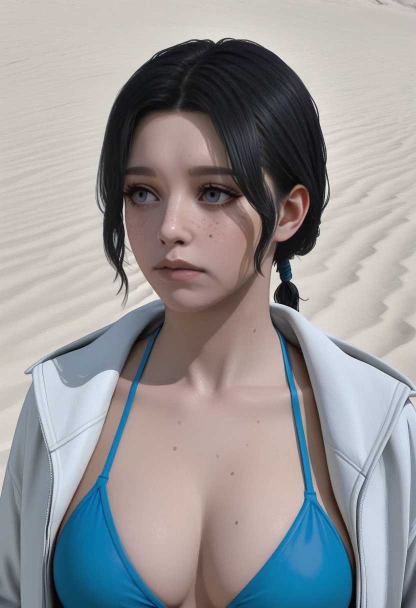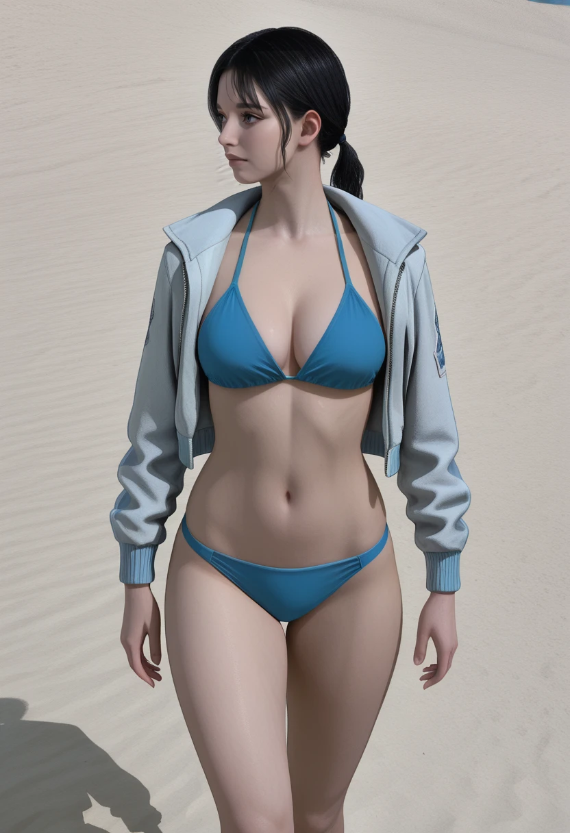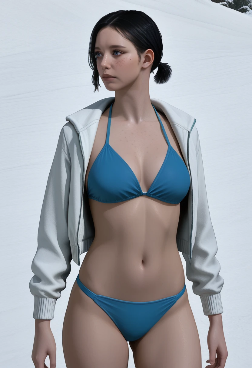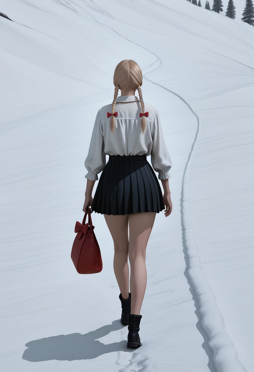 wearing school uniform, white shirt, red bowtie, black pleated skirt,