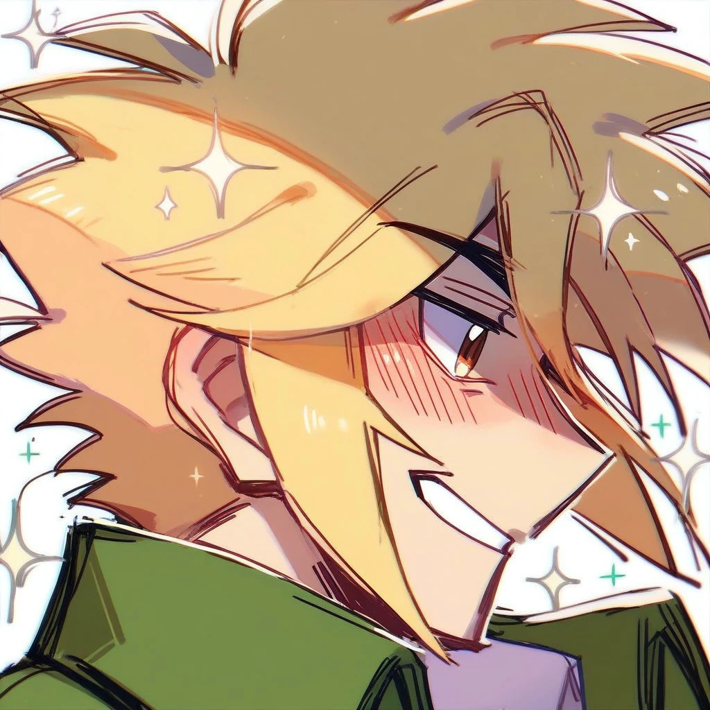 1boy, male focus, sidelocks, blonde hair, brown eyes