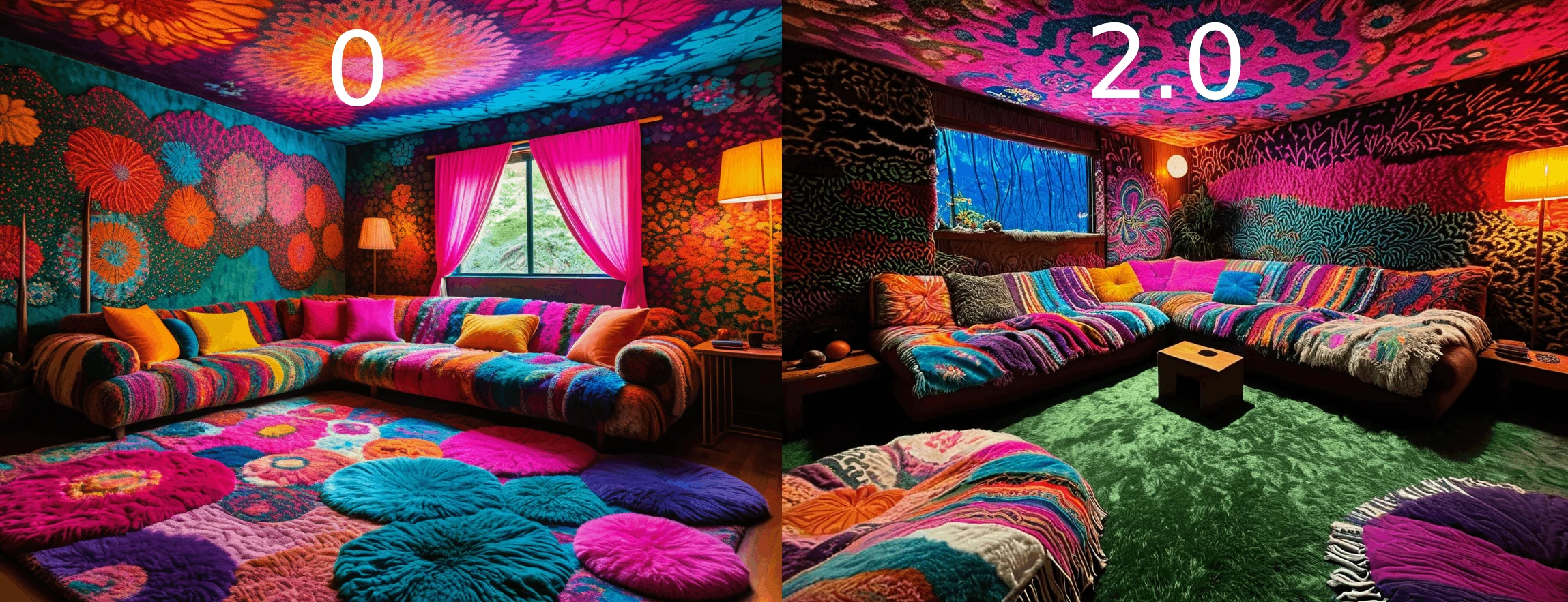 good at adding graffiti (trained on a lot of graffiti room walls)