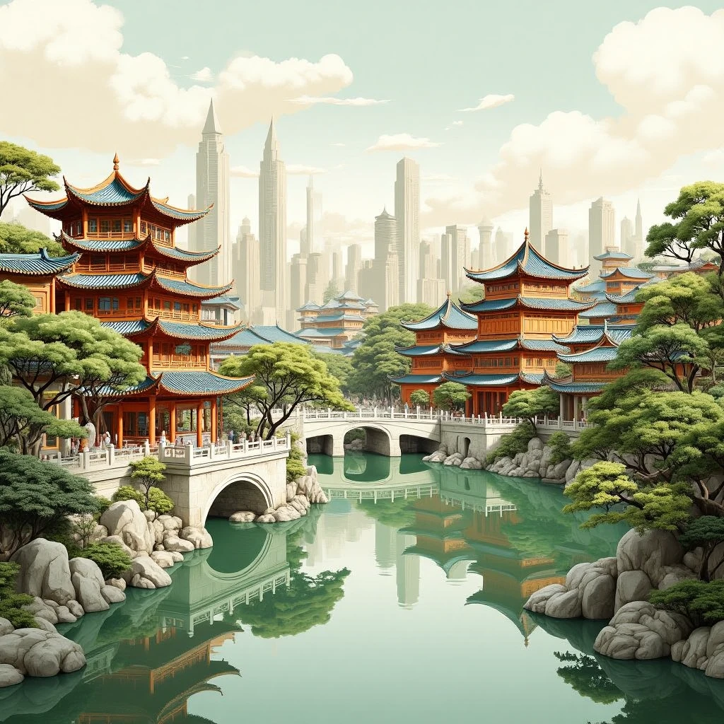 • It has excellent scene construction ability and is suitable for design needs such as ancient architecture illustrations and Chinese-style scene creation.