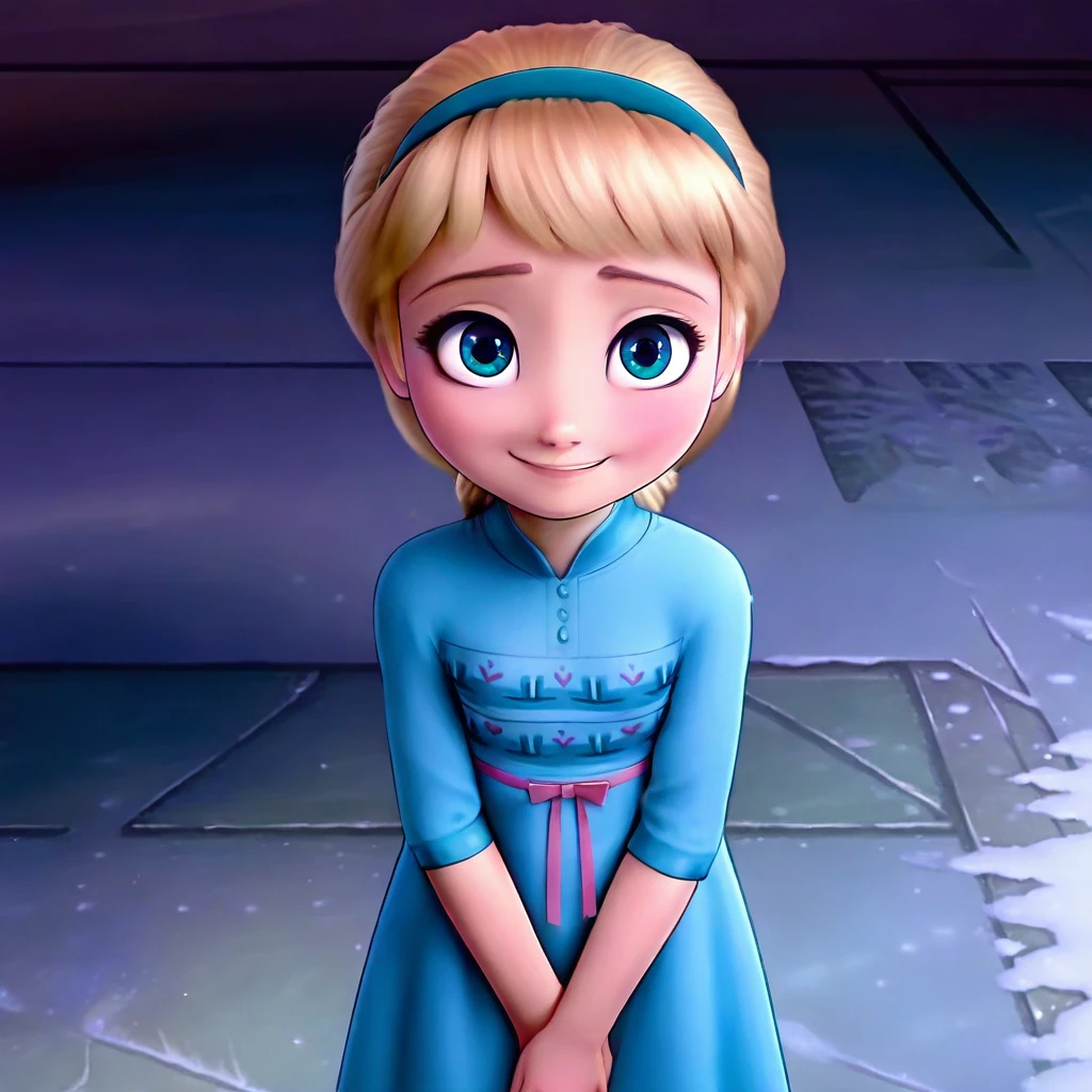 Elsa character from frozen in flashback the past including with blue dress