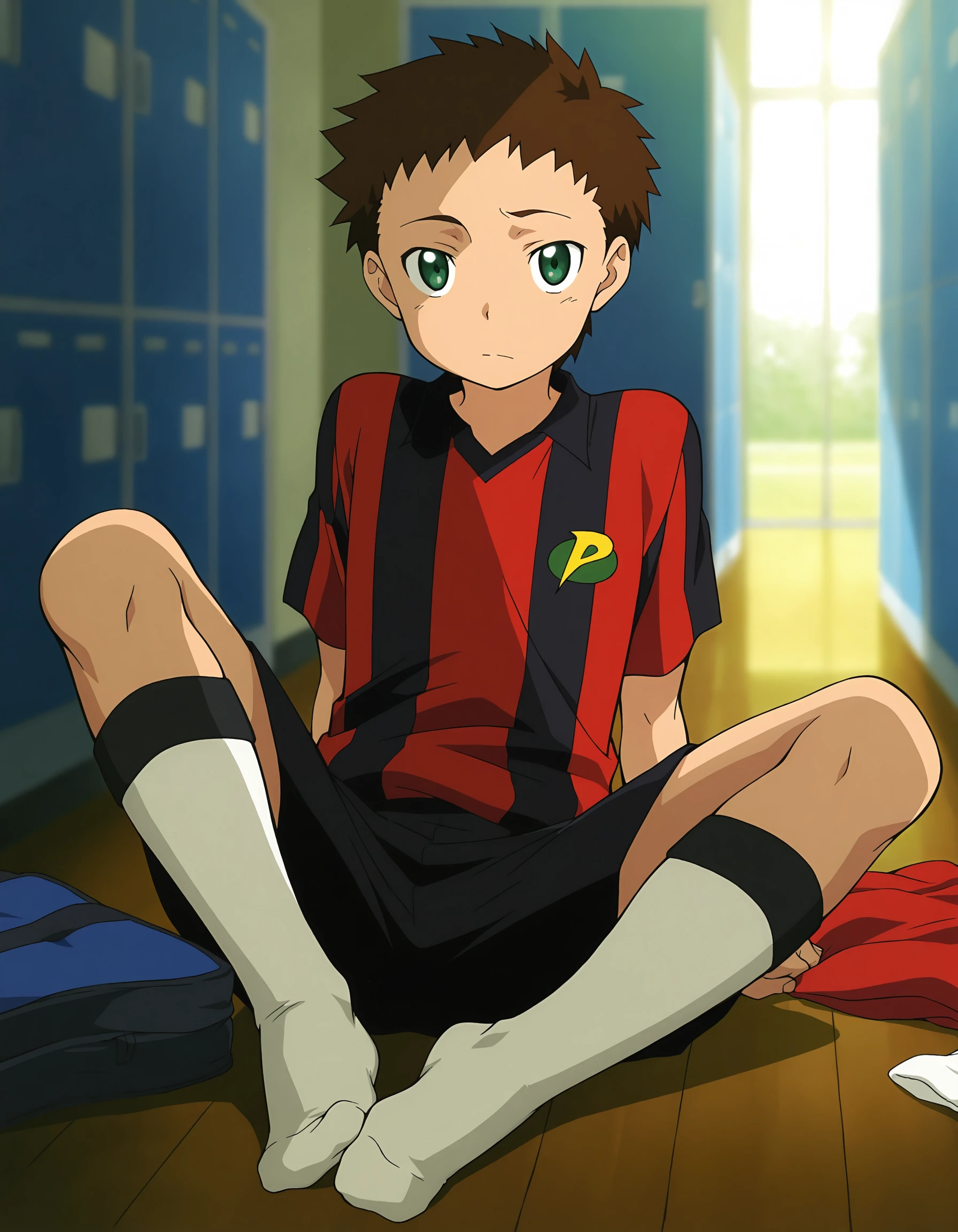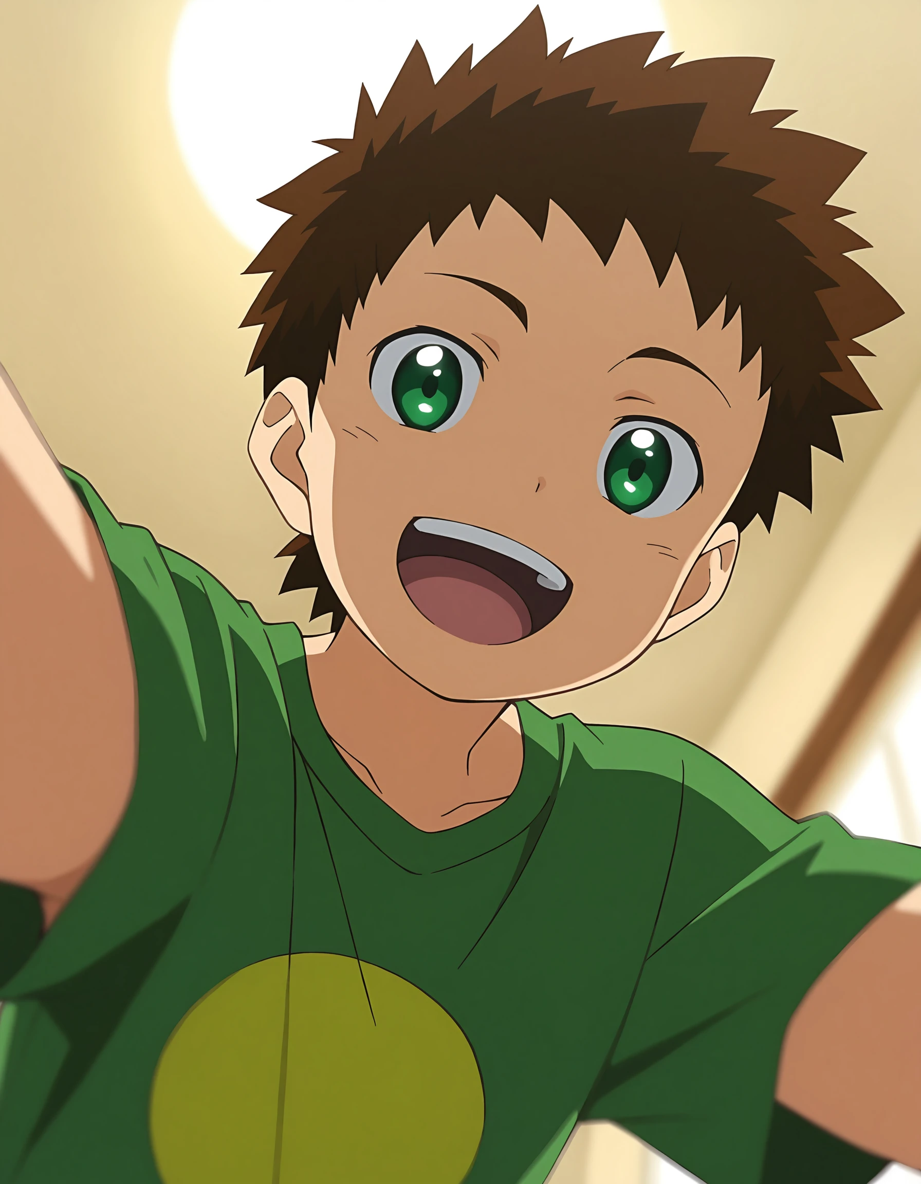 Trigger Words :shou oota, brown hair, green eyes, 1boy, male focus,