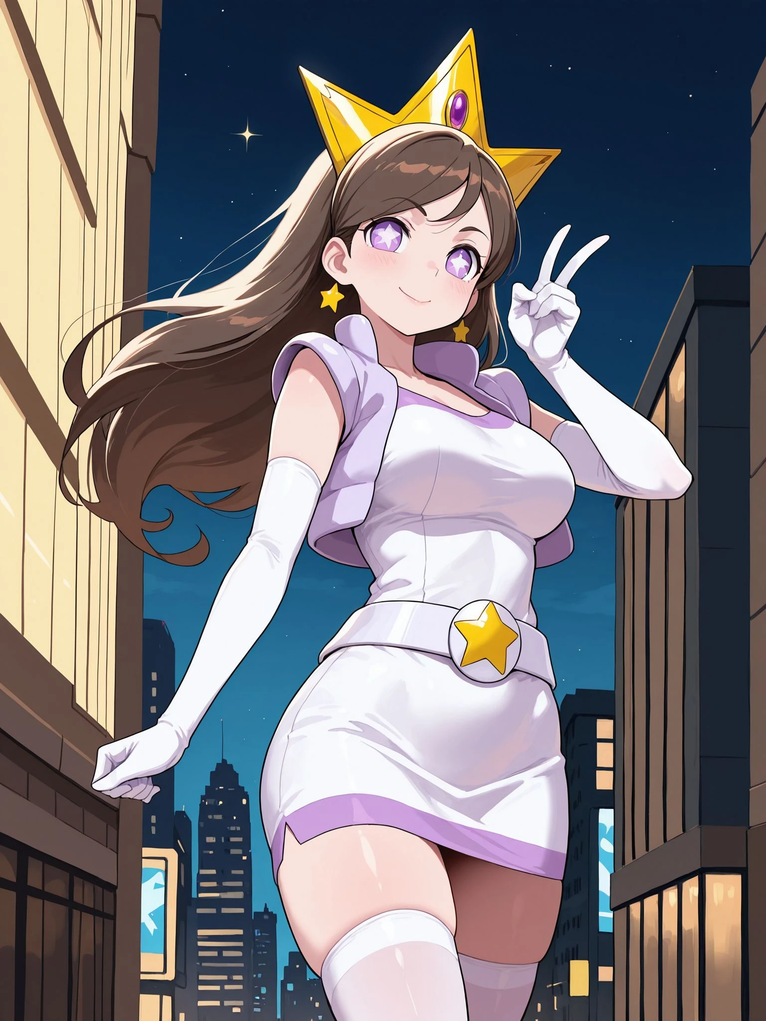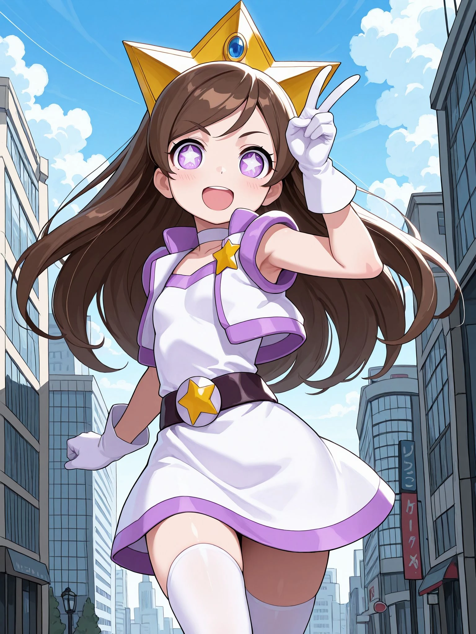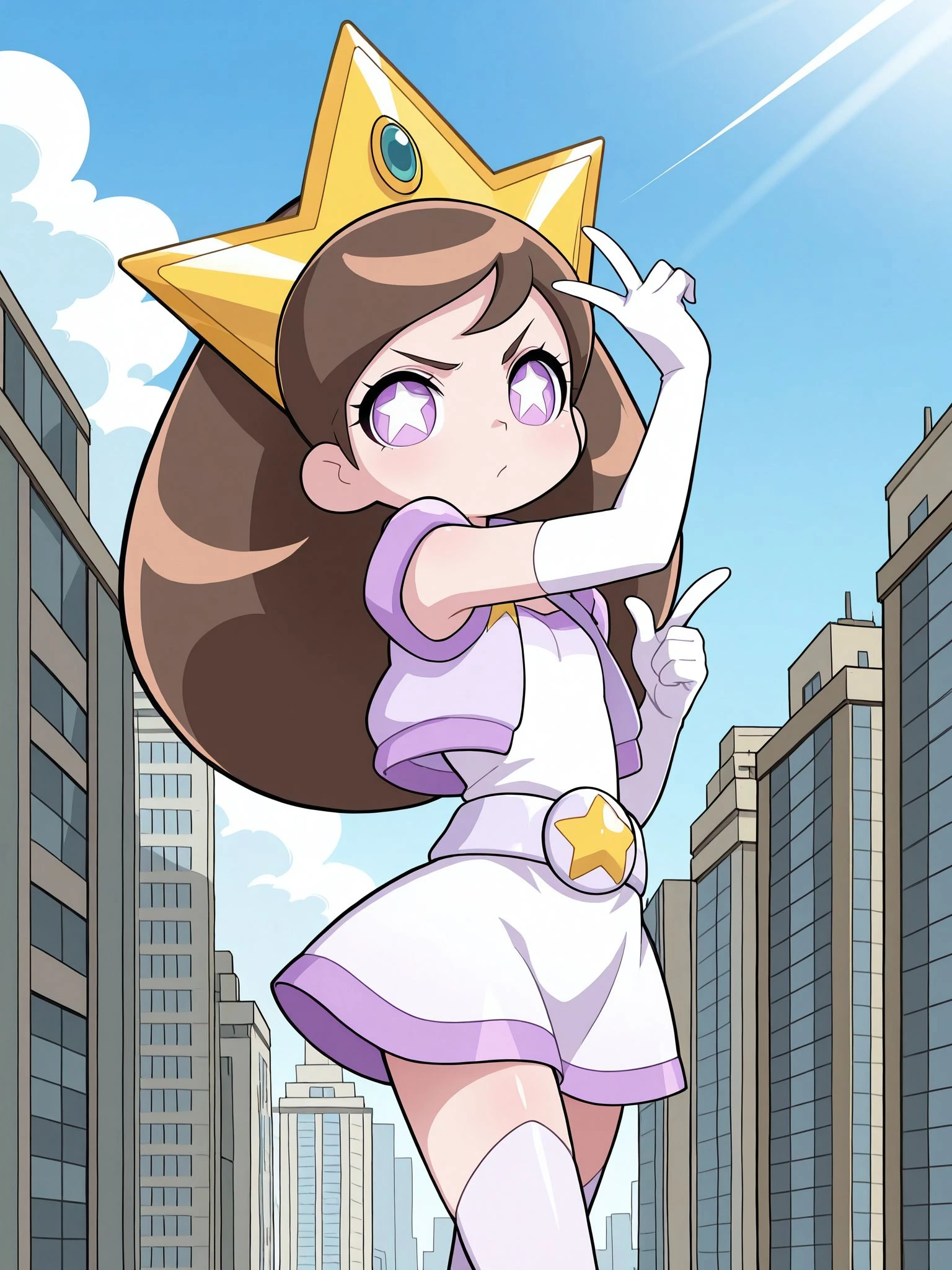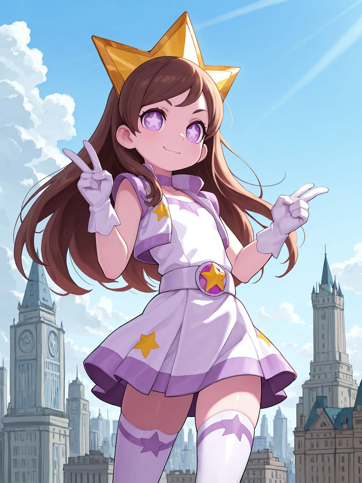 Dutchess Morbucks from The Powerpuff Girls ZCharacter Tags: brown hair, long hair, + +, purple eyesOutfit Tags: gloves, thighhighs, star (symbol), dress, white gloves, belt, crown