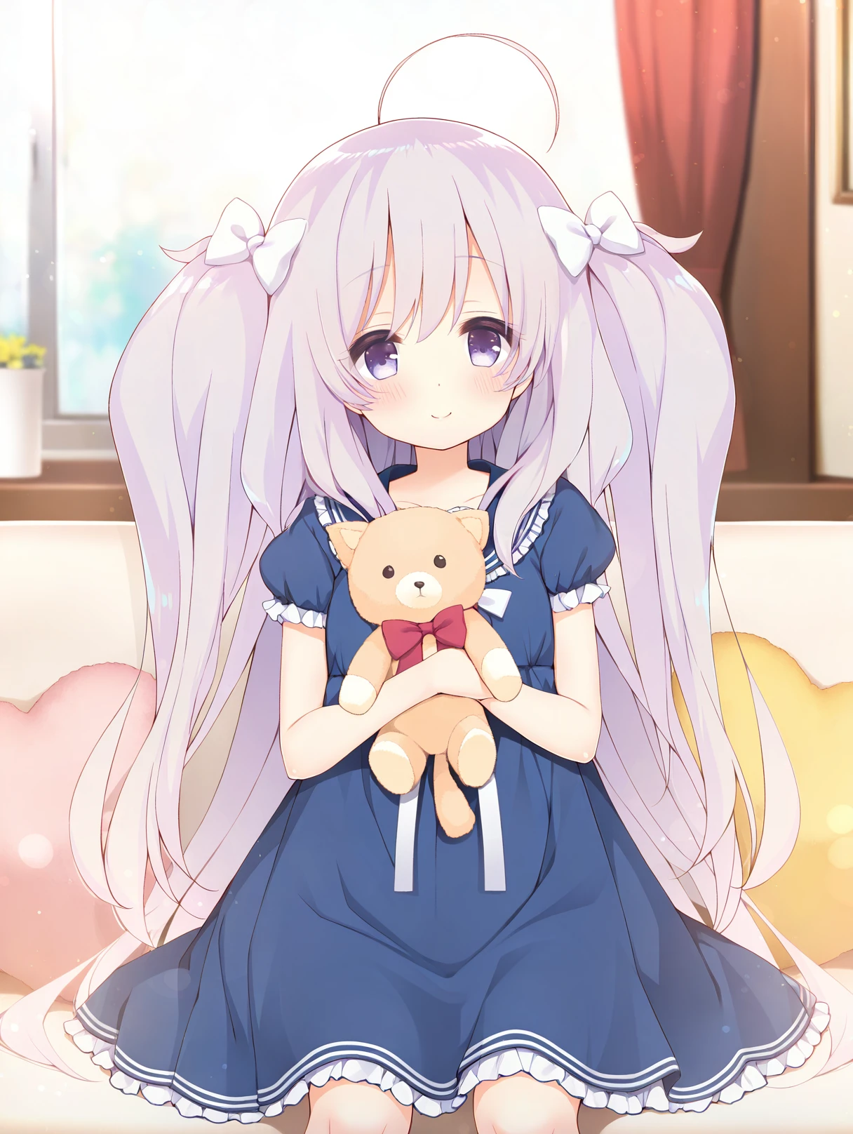 bow,sailor dress,white bow,blue dress,short sleeves