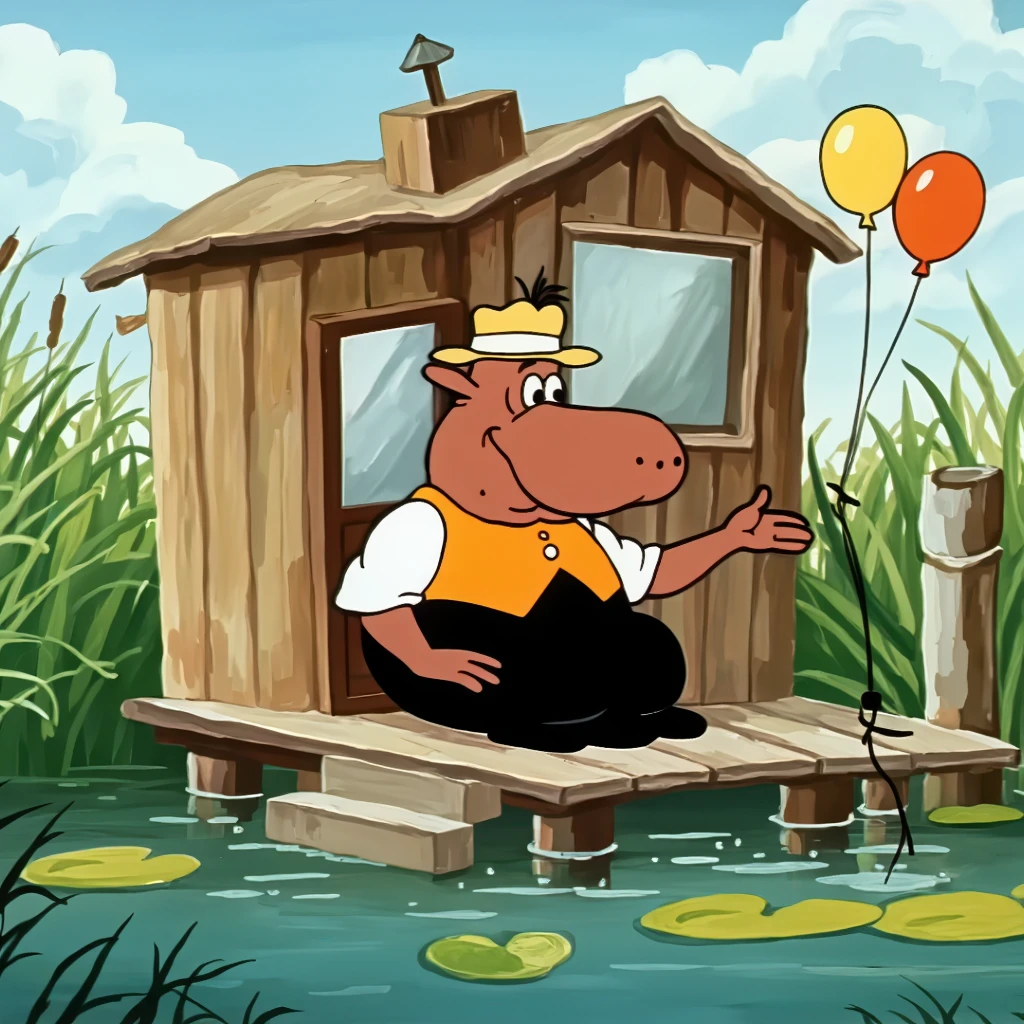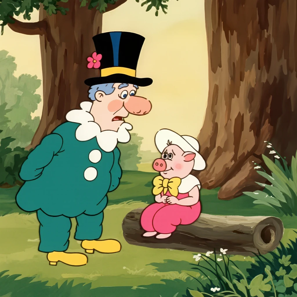 The style is based on hand-drawn frames from the 1986 cartoon Funtik, released in the USSR.