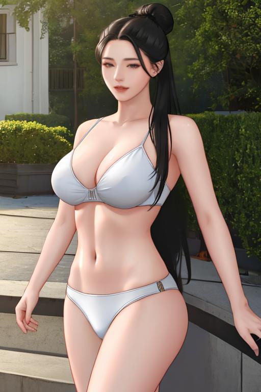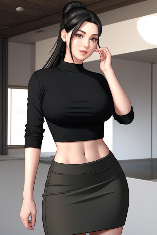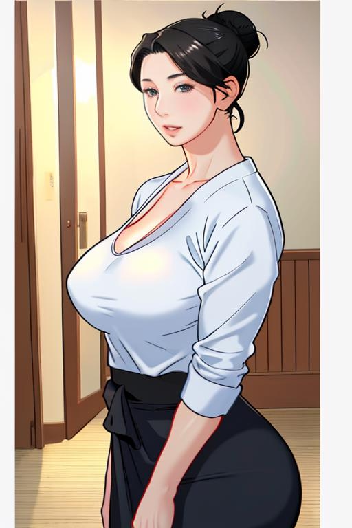 long_hair,large_breasts,black_hair,hair_bun