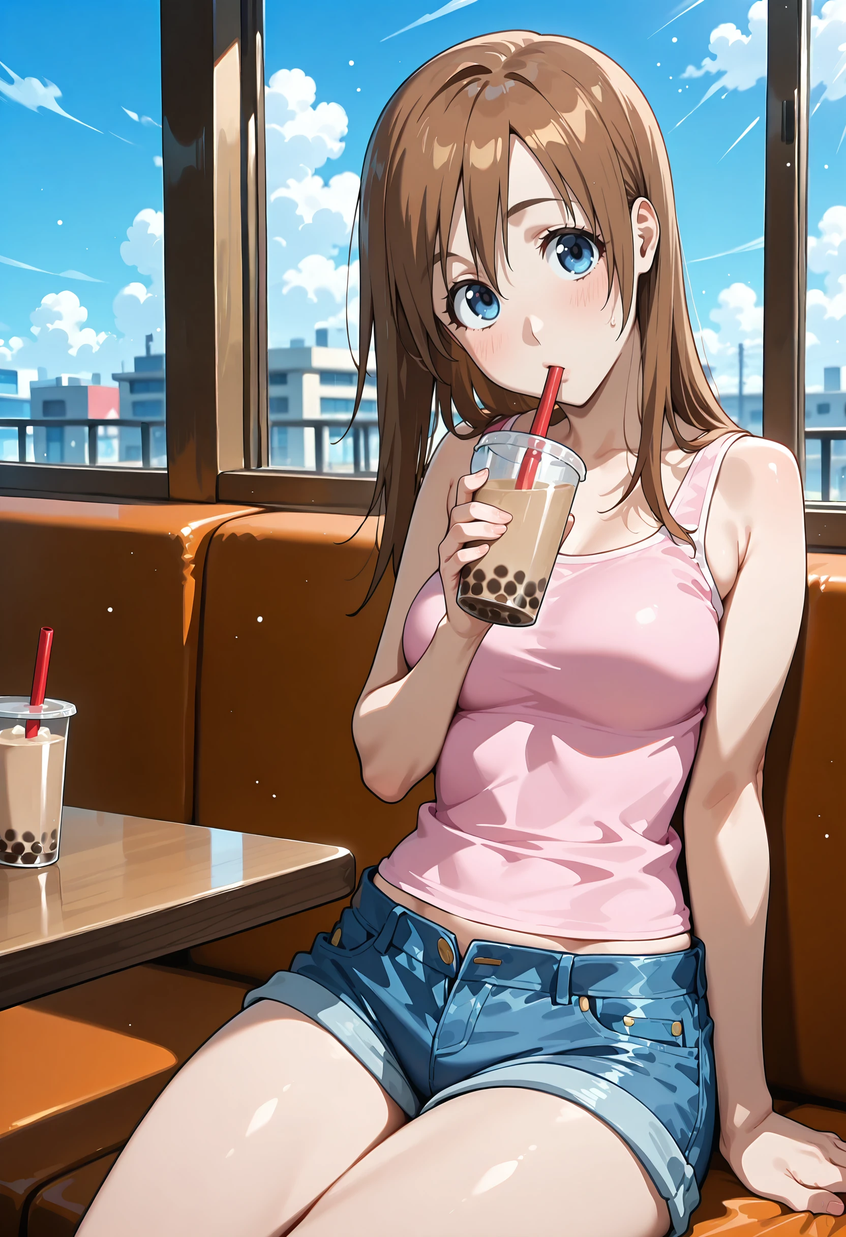 #2: pink tank top, denim shorts, white sneakers