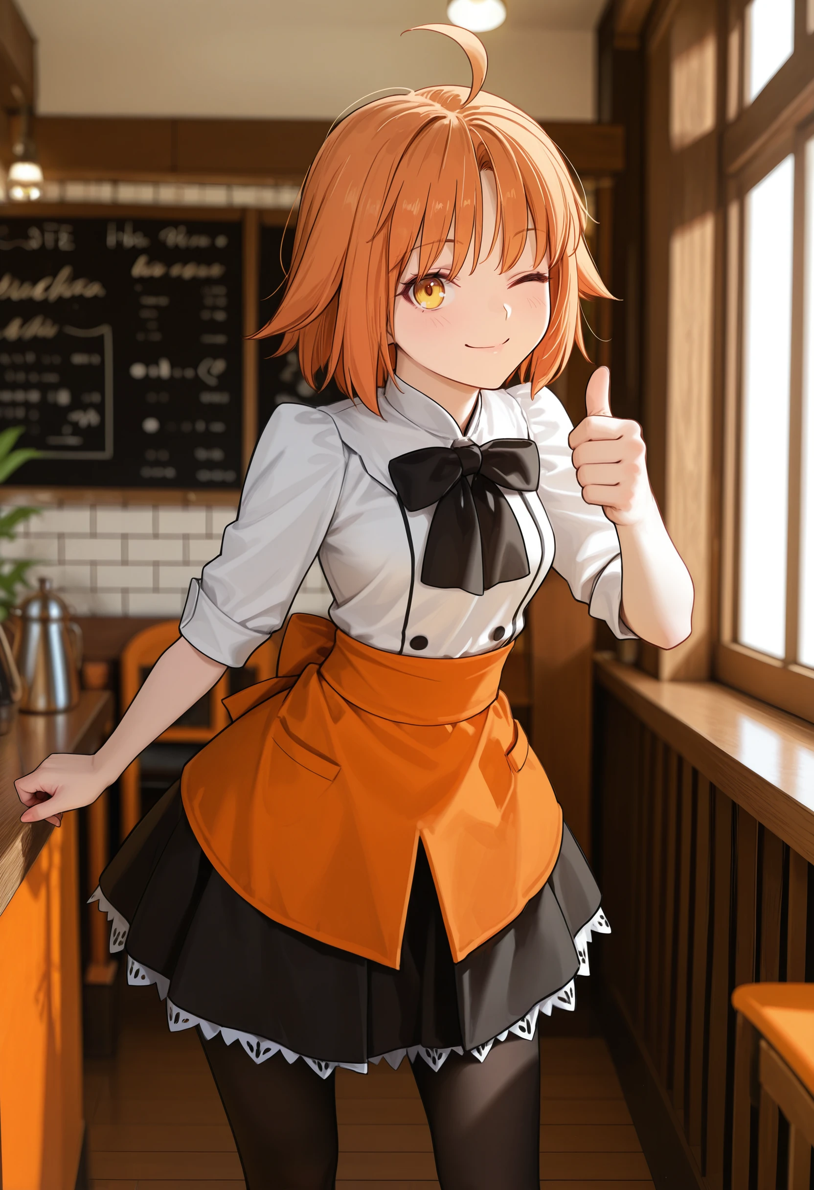Hibino Hibiki, orange hair, short hair, yellow eyes, ahoge