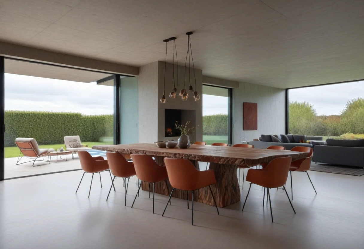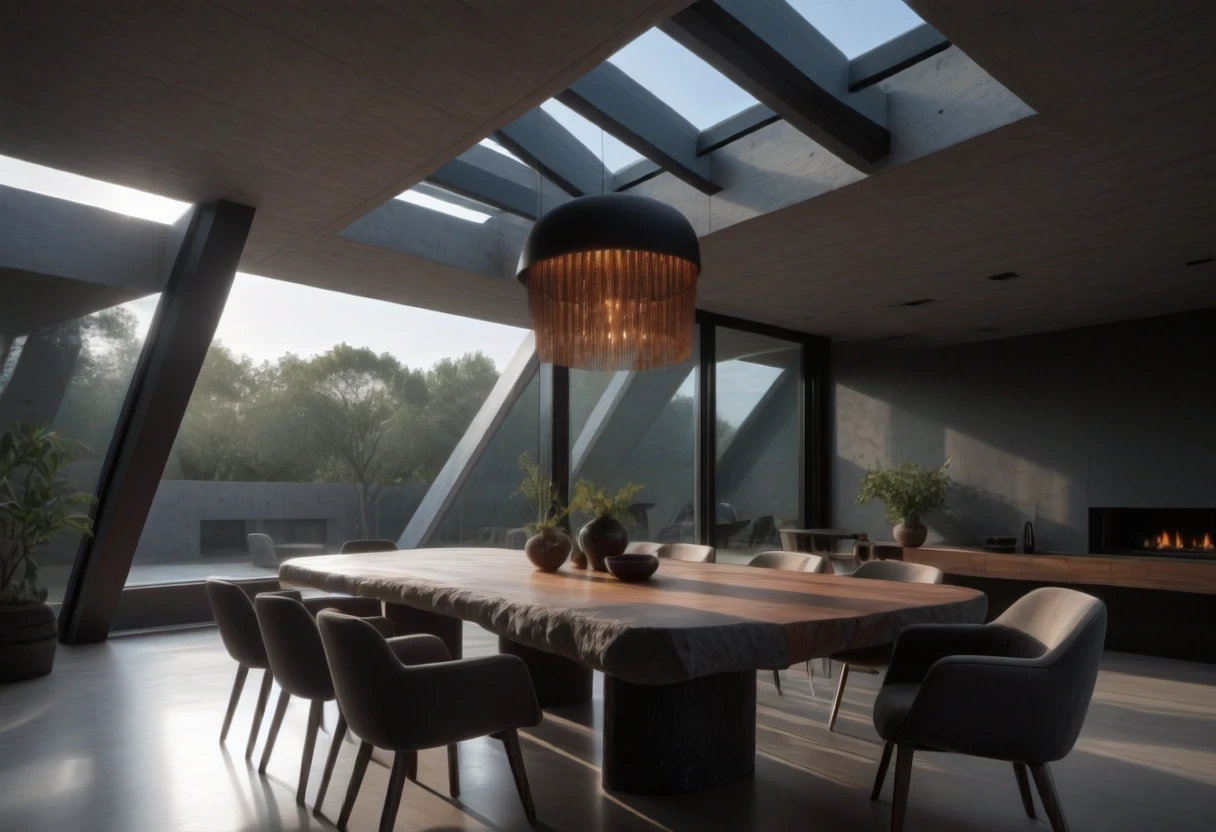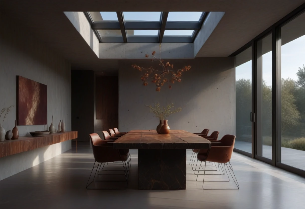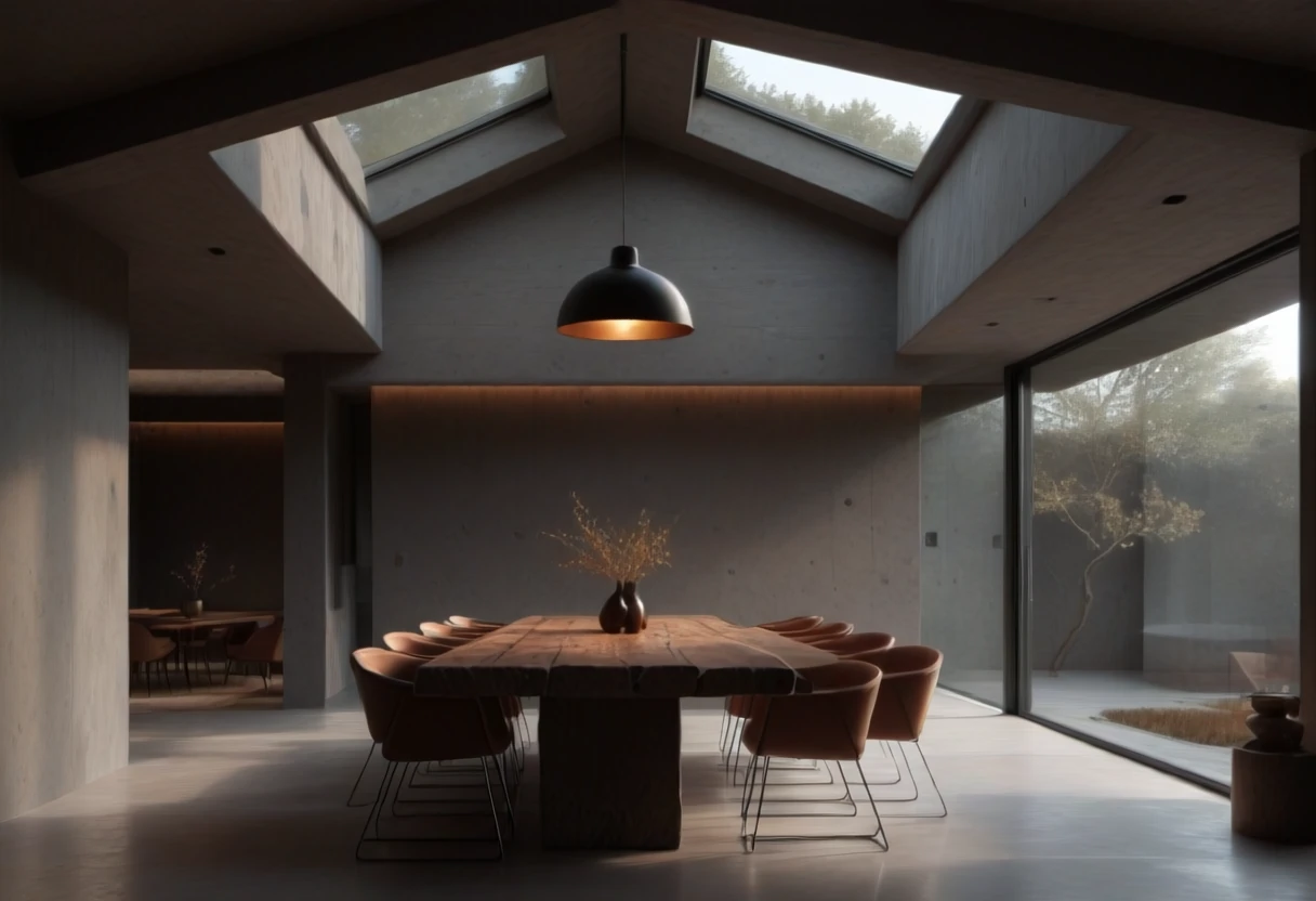 This is an SDXL lora for Brutalist Home Interior Dining Rooms.