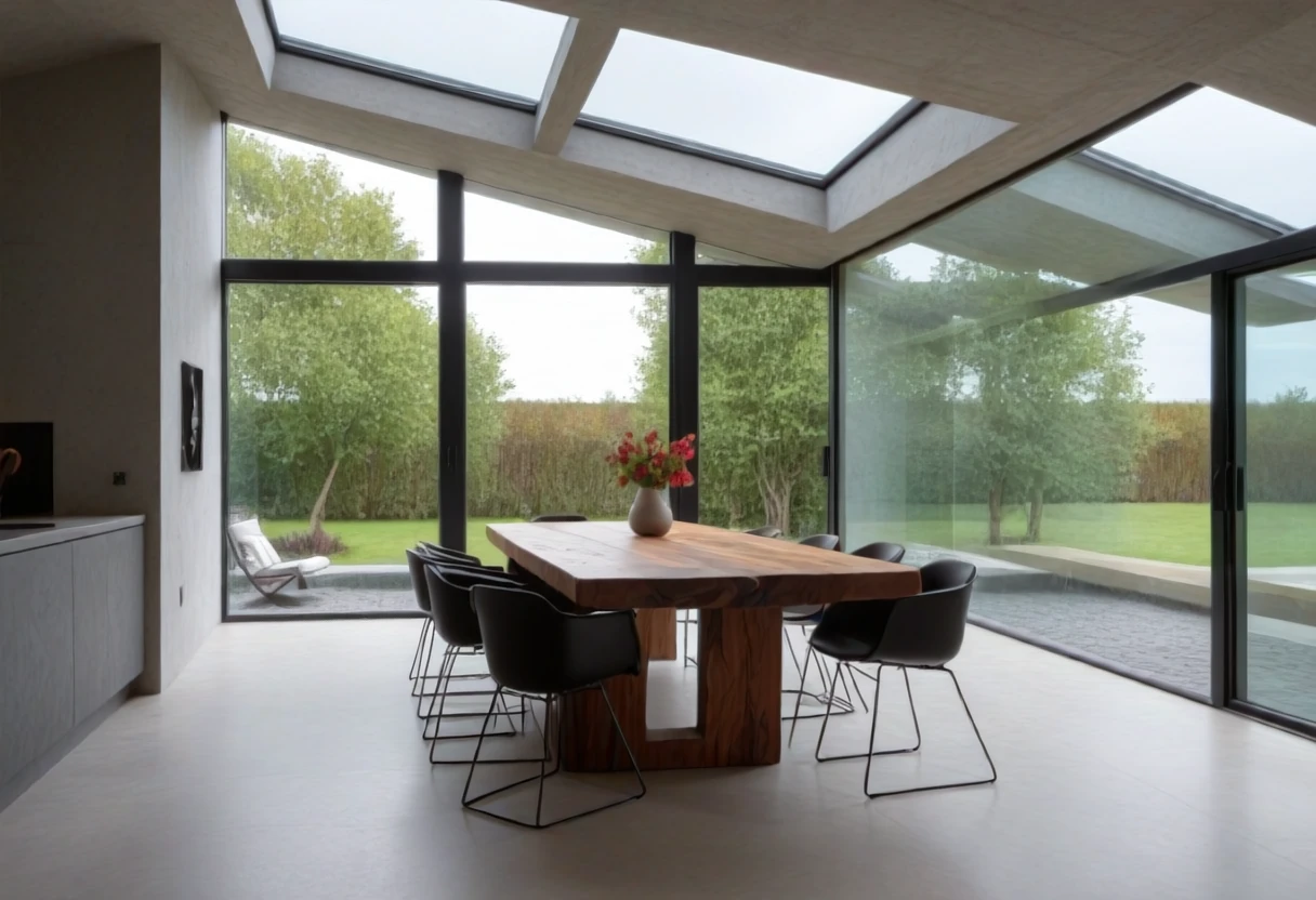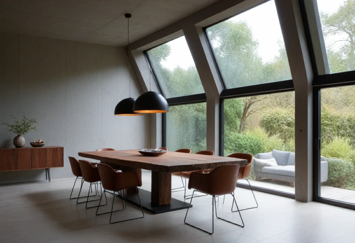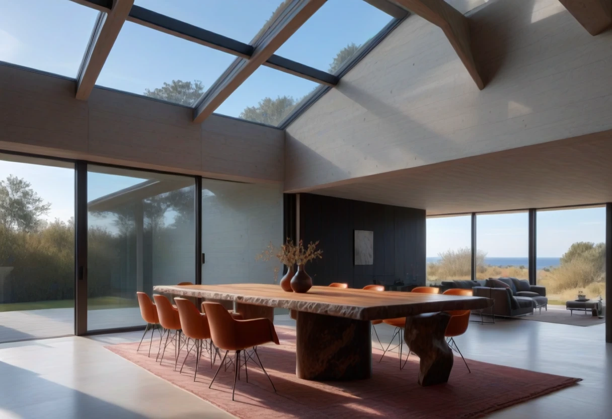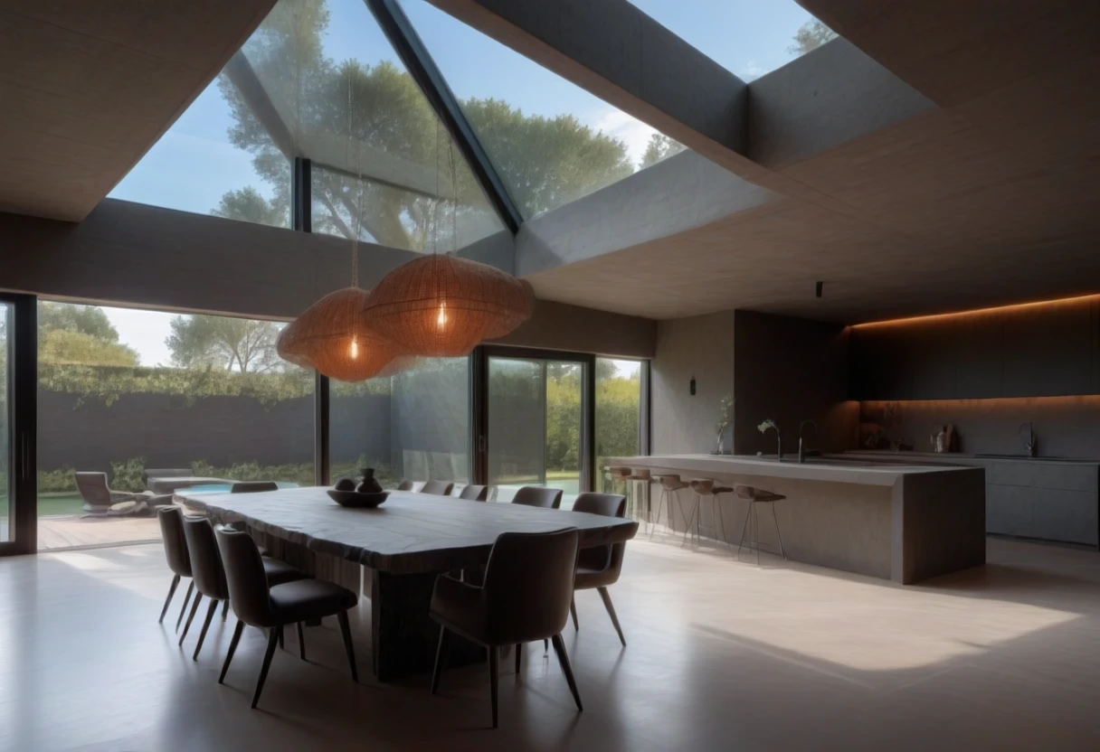 This is an SDXL lora for Brutalist Home Interior Dining Rooms.
