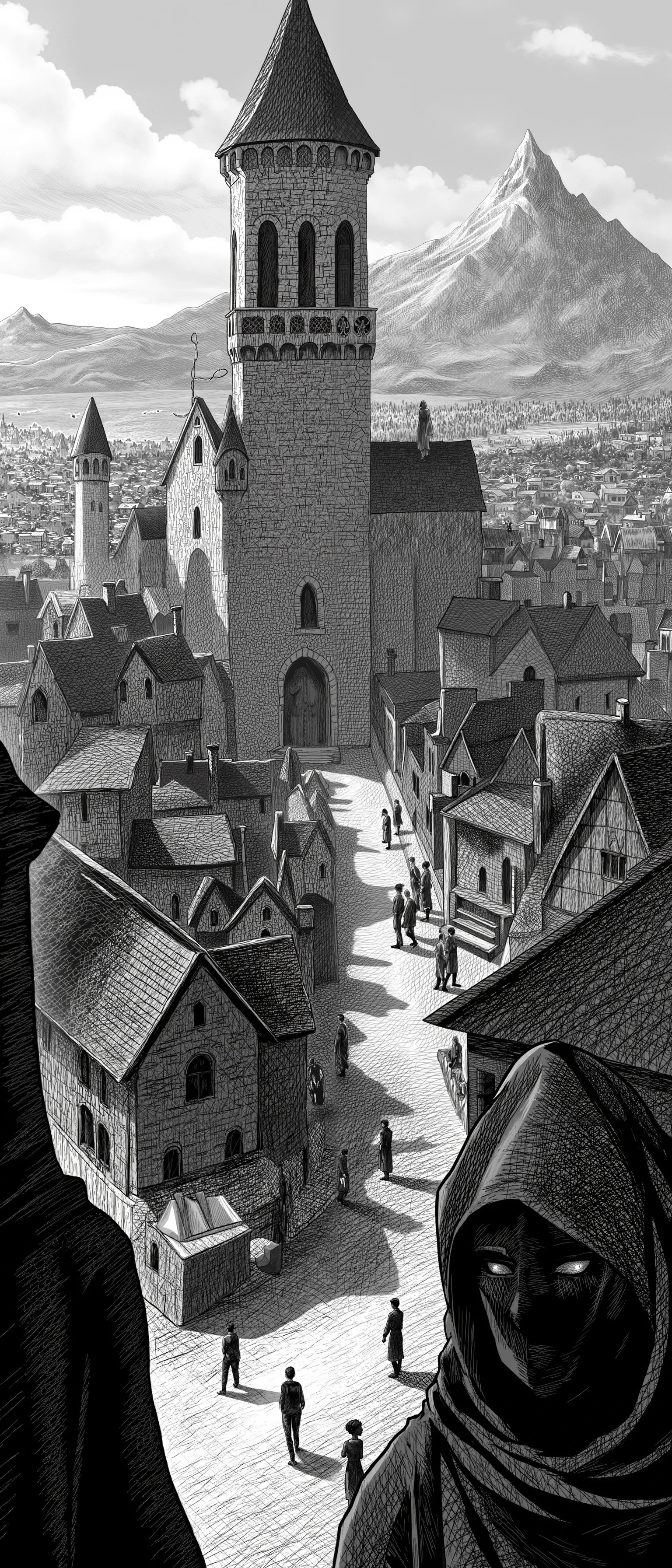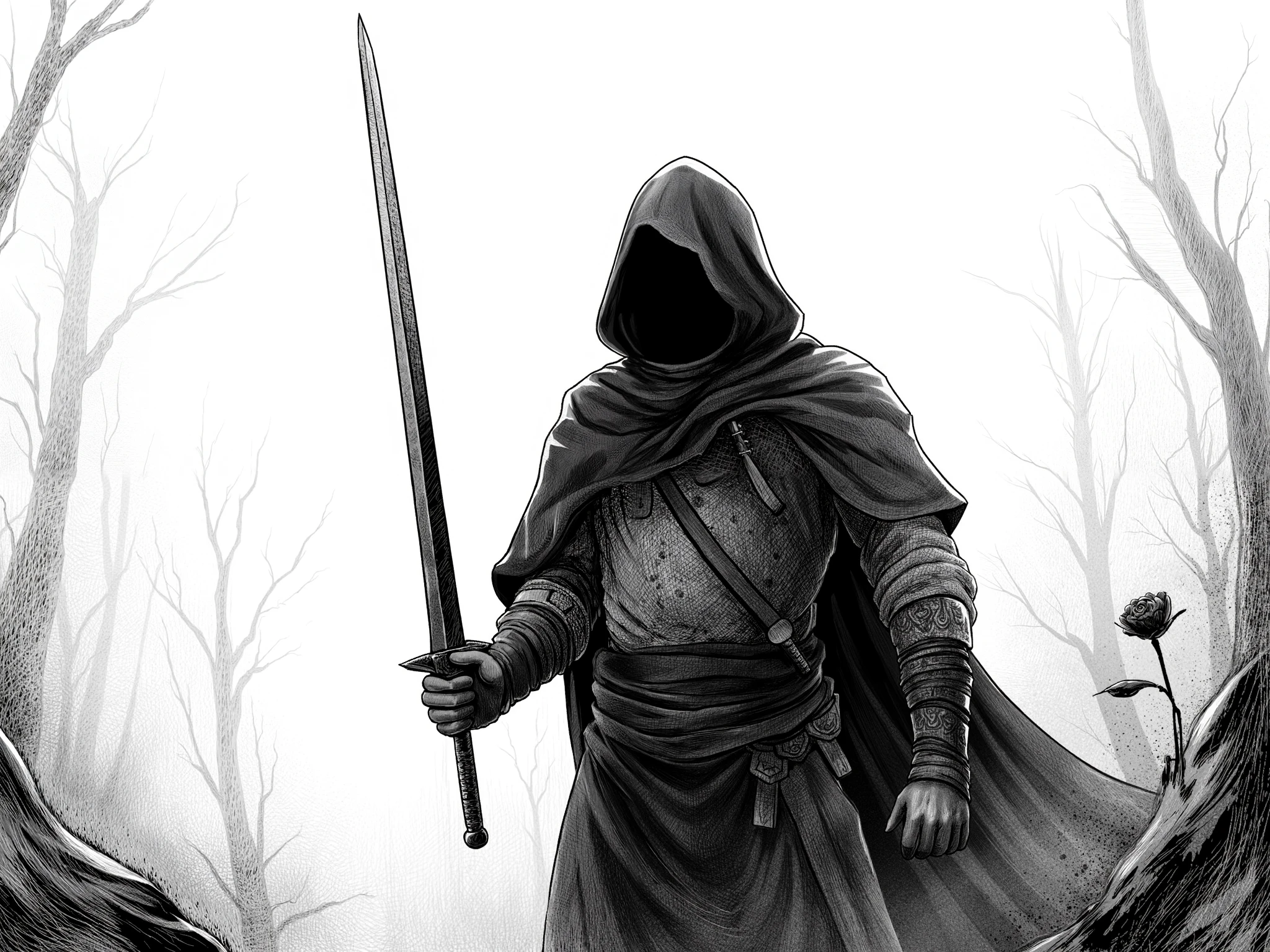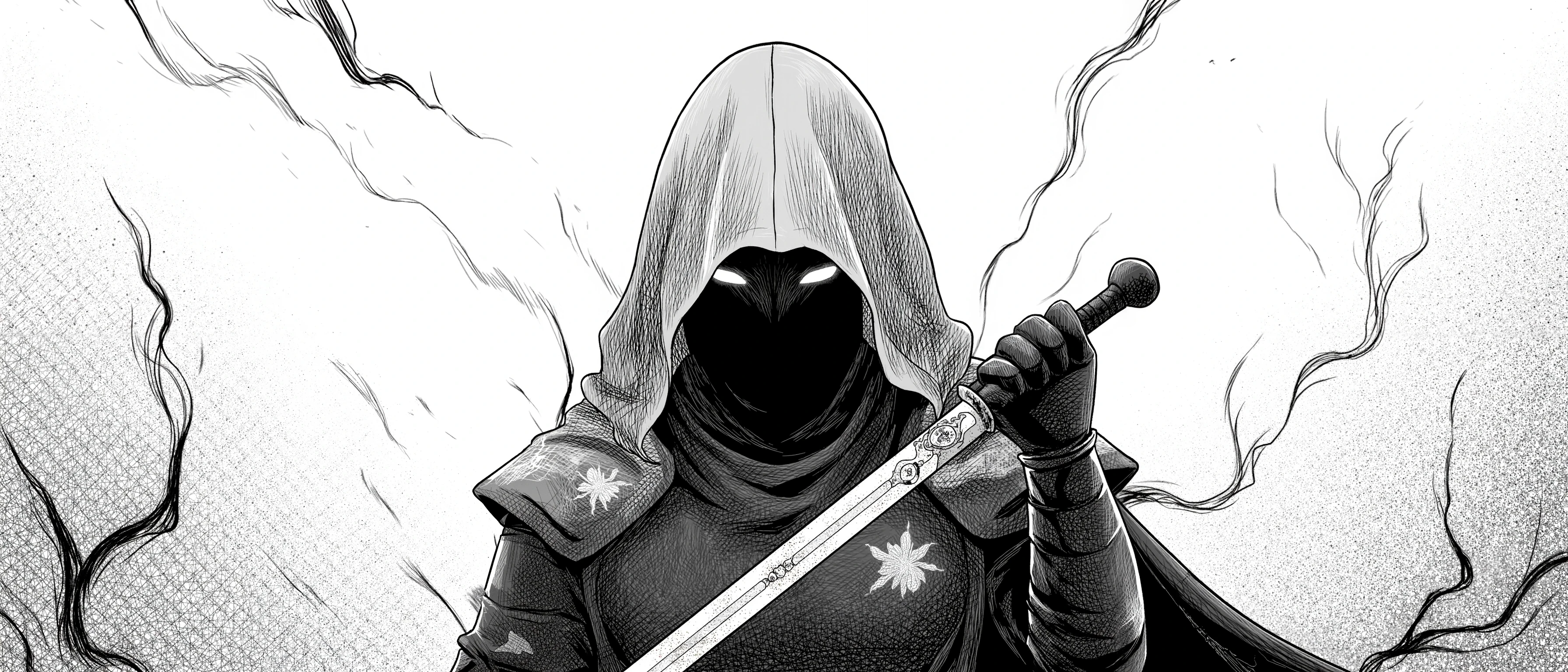 In a monochrome, black and white manga style illustration, Inkugami Style
