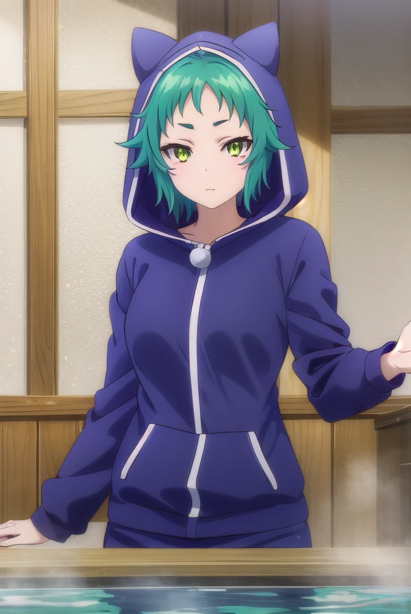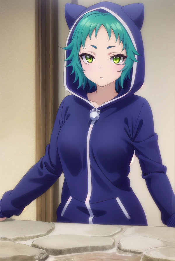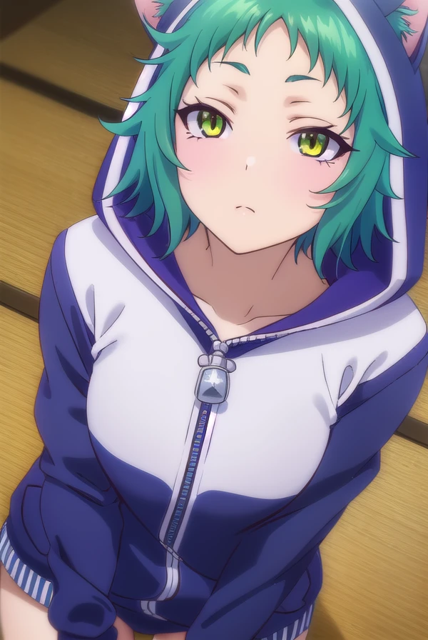 yaya fushiguro, short hair, (green eyes:1.3), green hair,