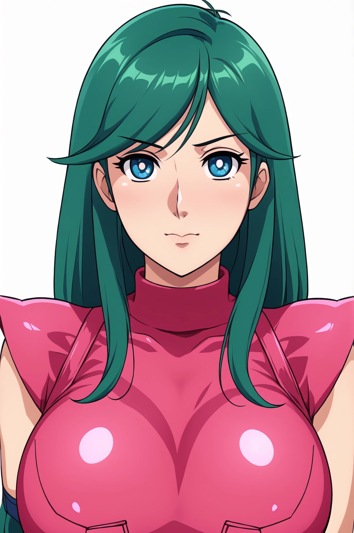 Blue eyes, Green hair,bangs,Long hair,Makeup, red lipstick,