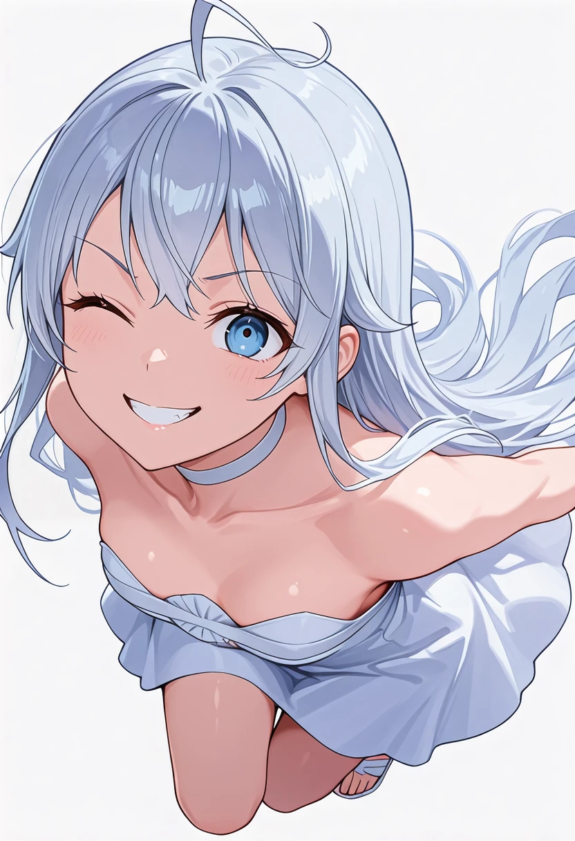 hibiki_cnr, 1girl,long hair, blue eyes, ahoge, very long hair,small breasts,