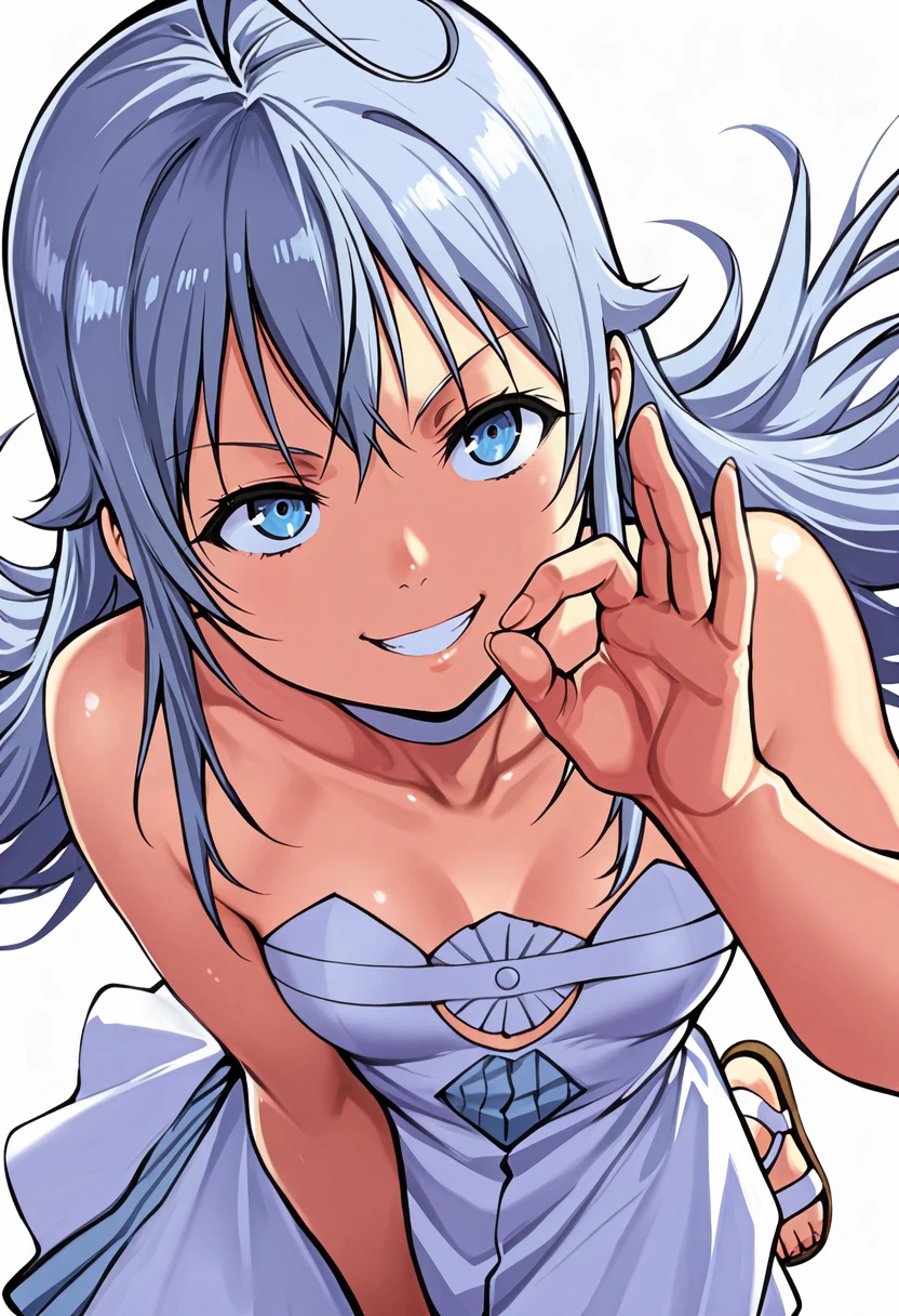 bare shoulders, white dress, white choker, strapless dress, sandals,Details