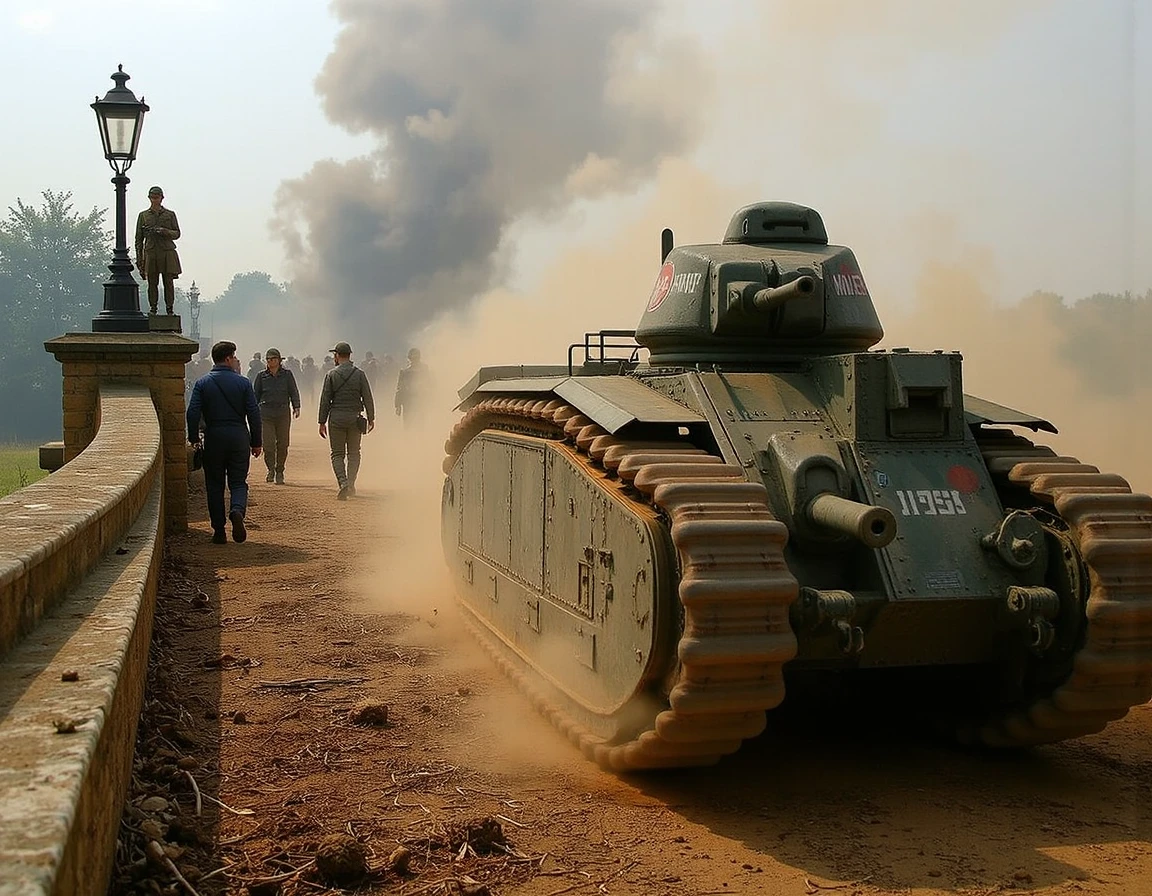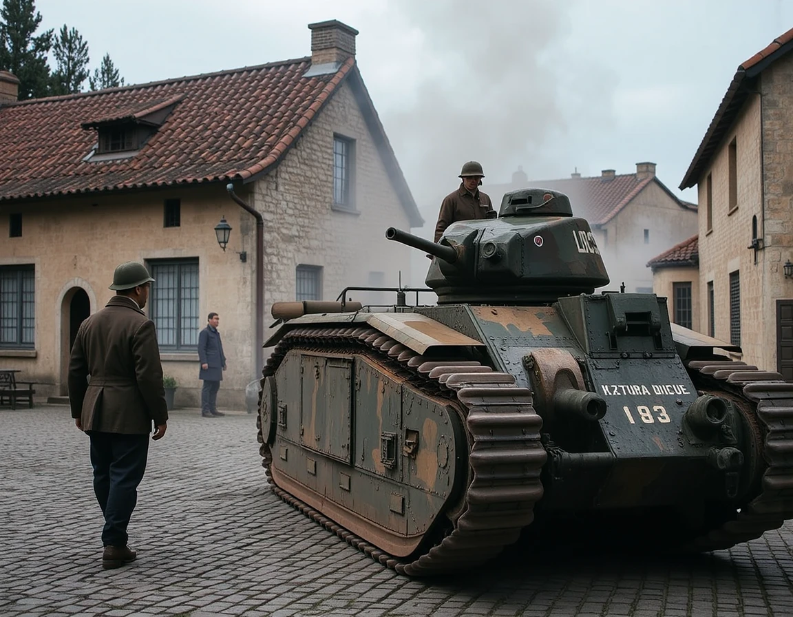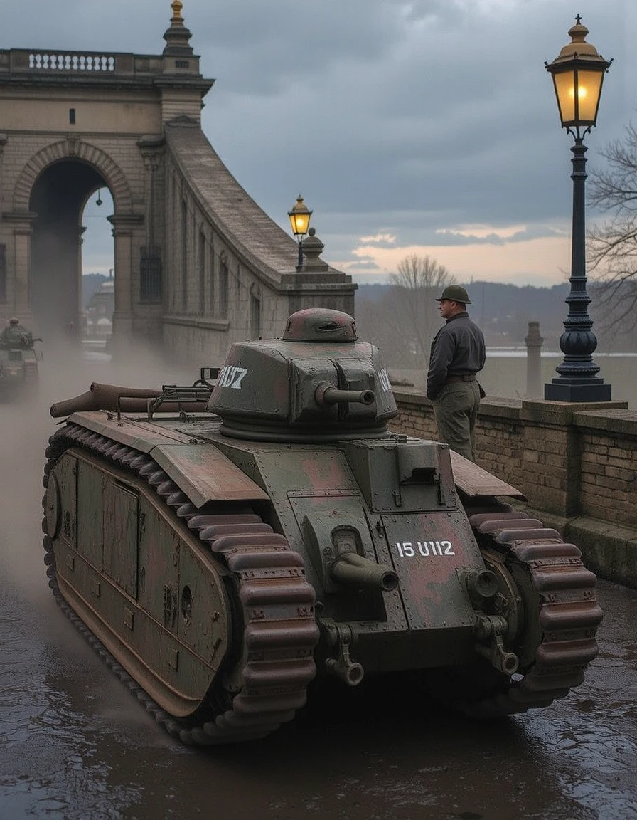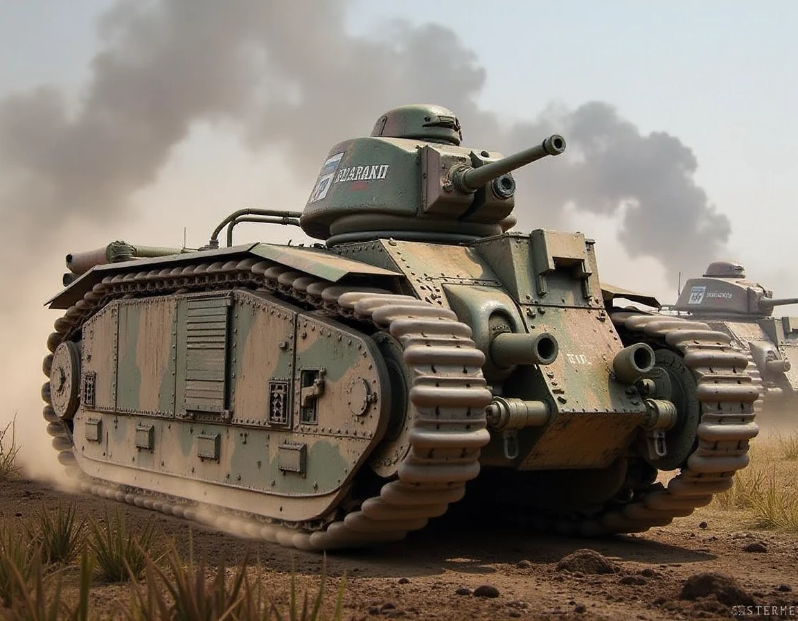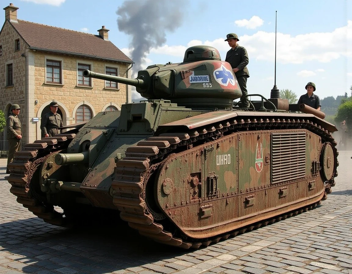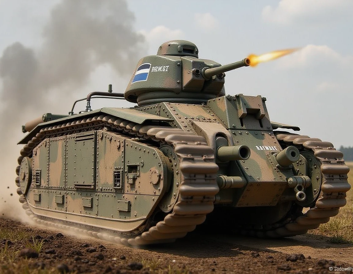 車体側に47mm戦車砲、砲塔に短砲身の75mm砲を搭載したフランスの重戦車(32 t)です。その重装甲は対ドイツ戦時、ドイツの主戦砲であった37mm砲、50mm砲では歯が立たず、巨大な壁となって立ちふさがったのであります。