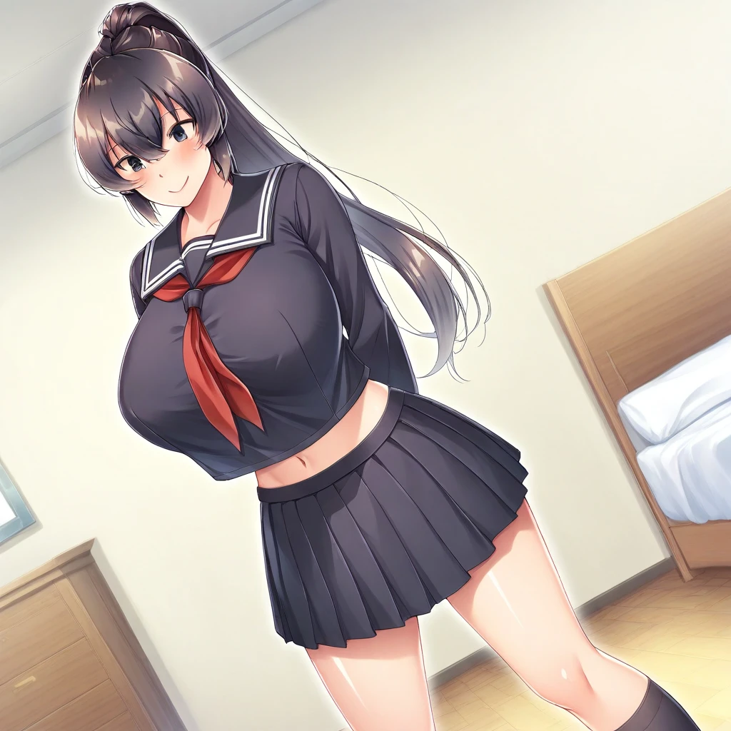 Recommend Prompt:Isana Tachibana, black eyes, slant eyes, black hair, long hair, ponytail,