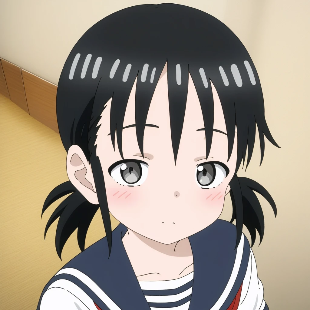 mano-chan , girl, black hair, bangs, gray eyes, small breast,