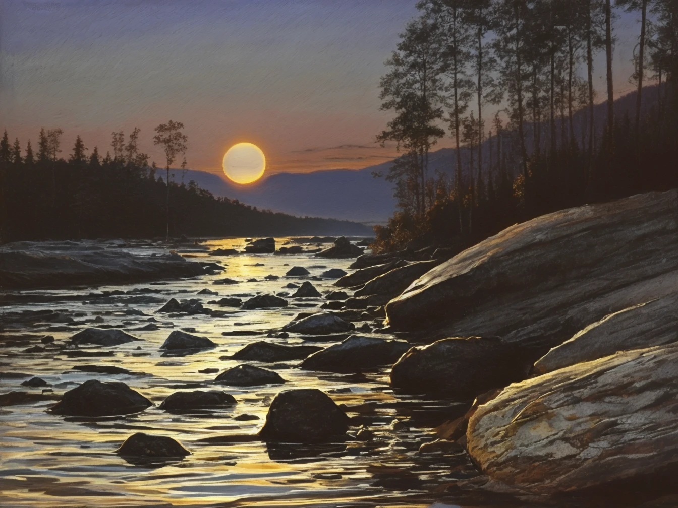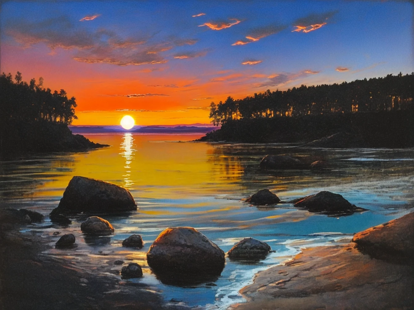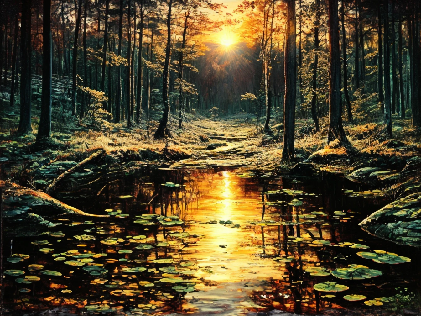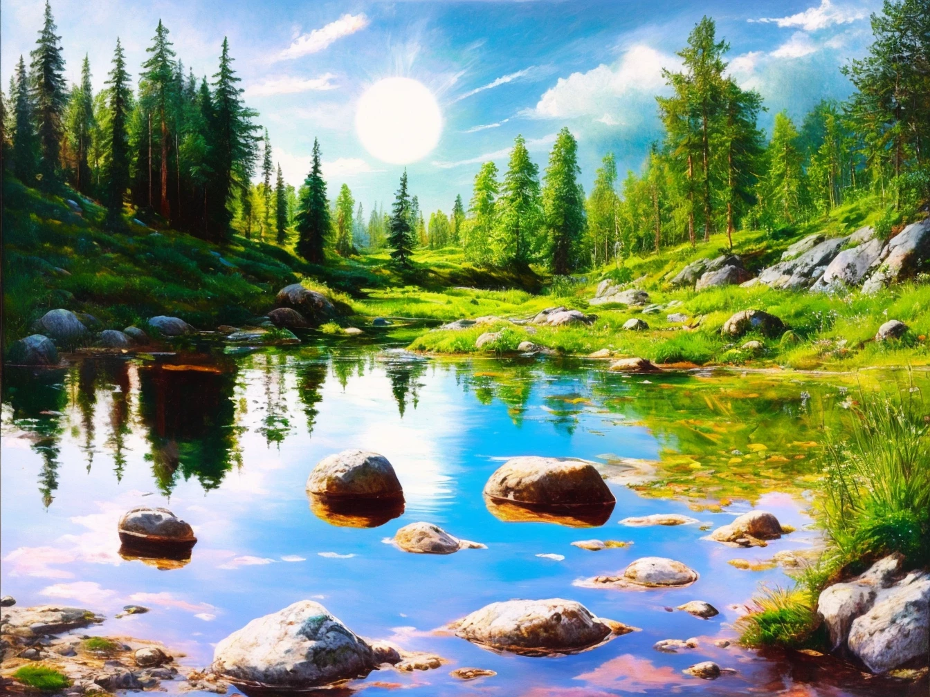 <lora:Ivan_Shishkin:1>, ivnshshkn, {8$$ tree| outdoors|nature| scenery| no humans| forest| sky| grass| cloud| day| cloudy sky| sunlight| sunset| water| rock| | reflection| bare tree| blue sky| sun| path},