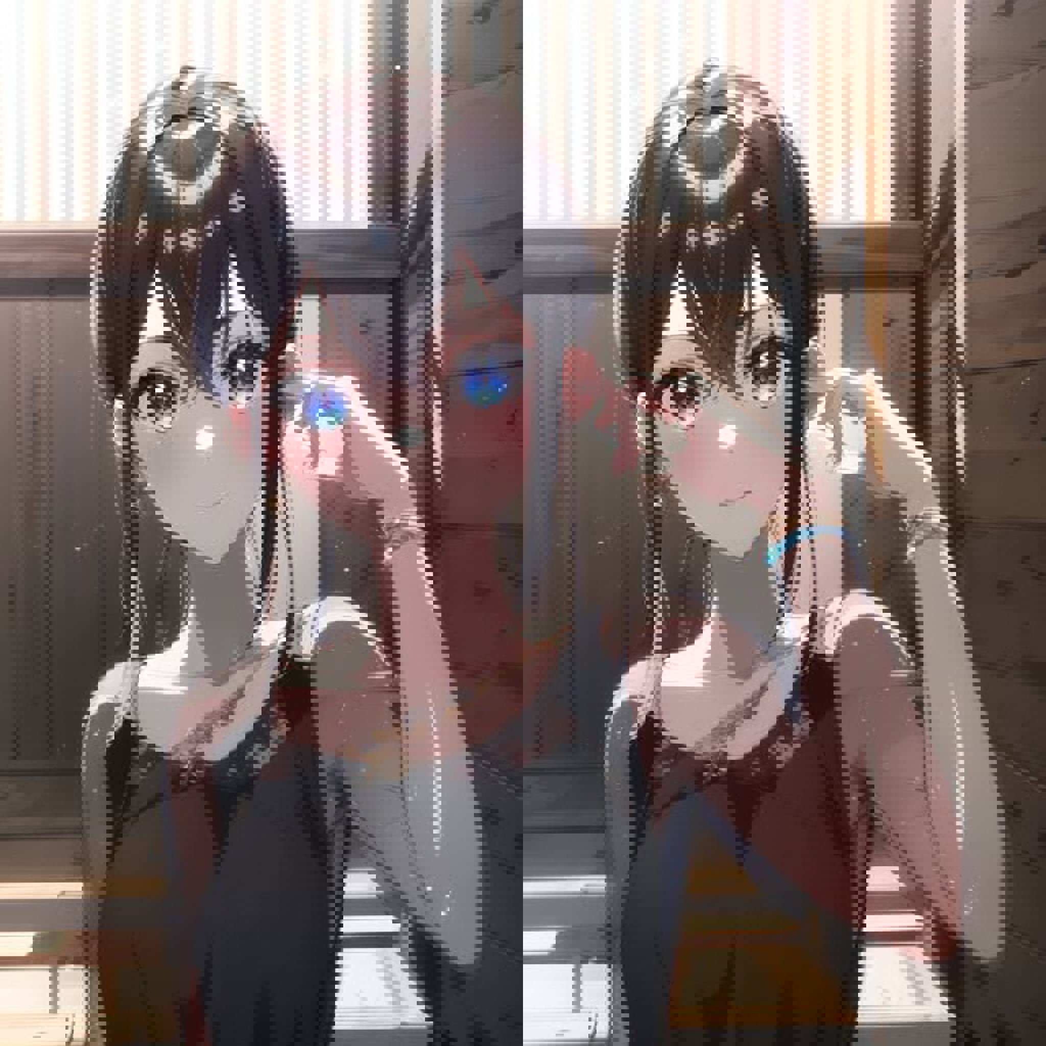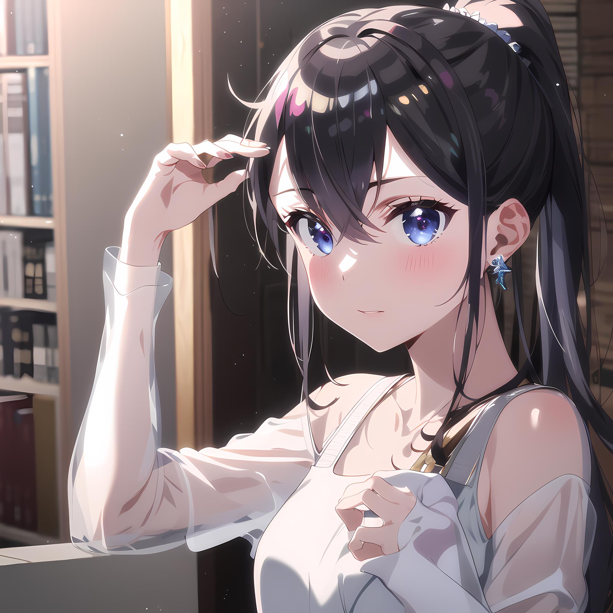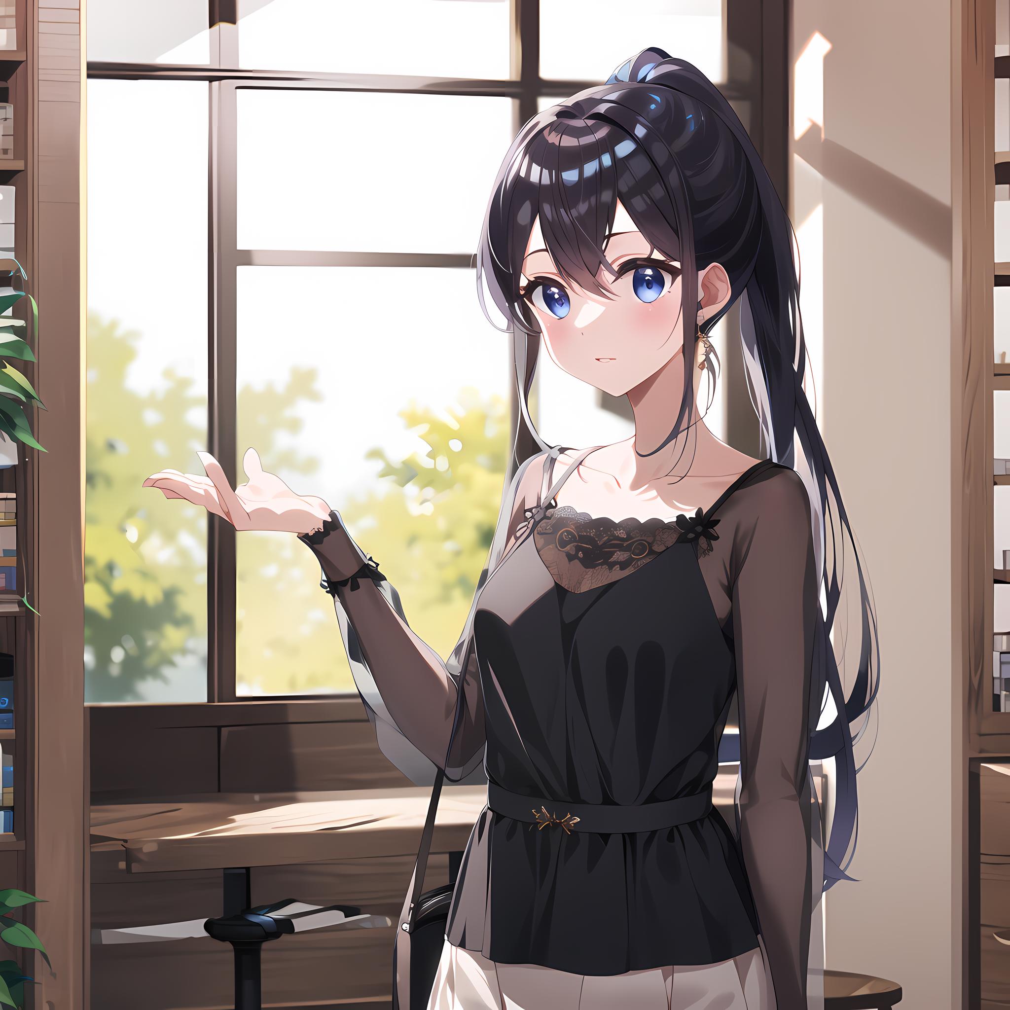 idol, blue_dress, hair_bow tags generate her B.B MV outfit
