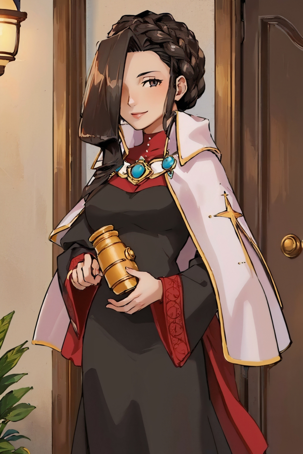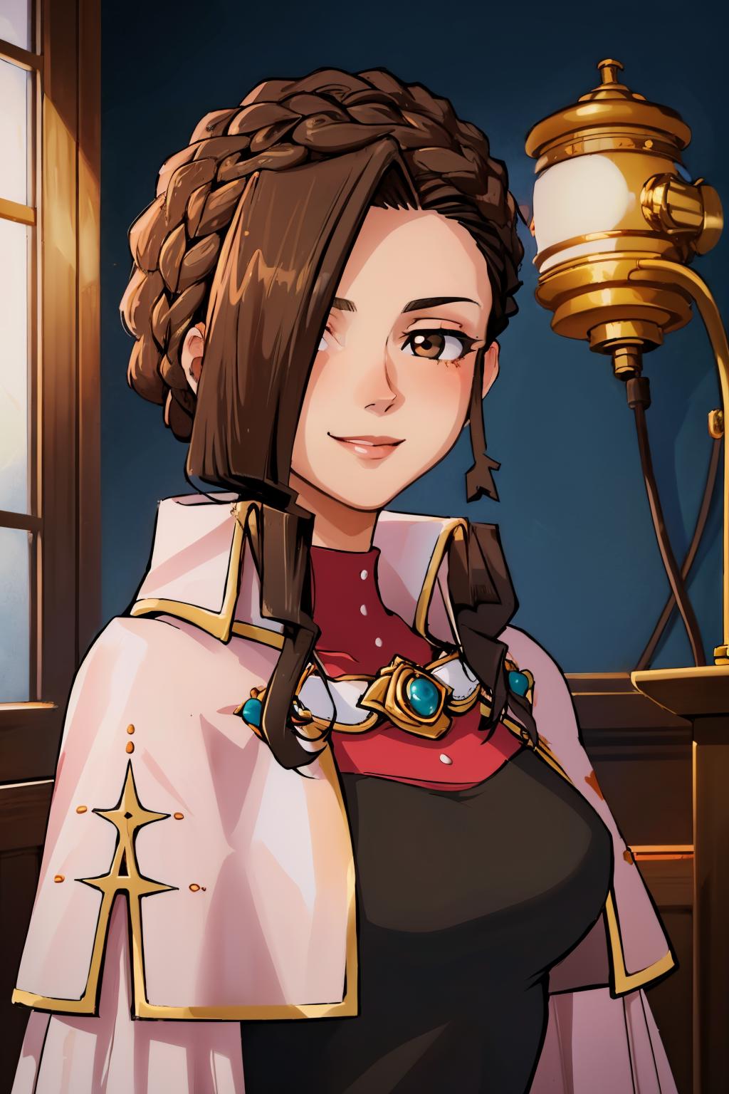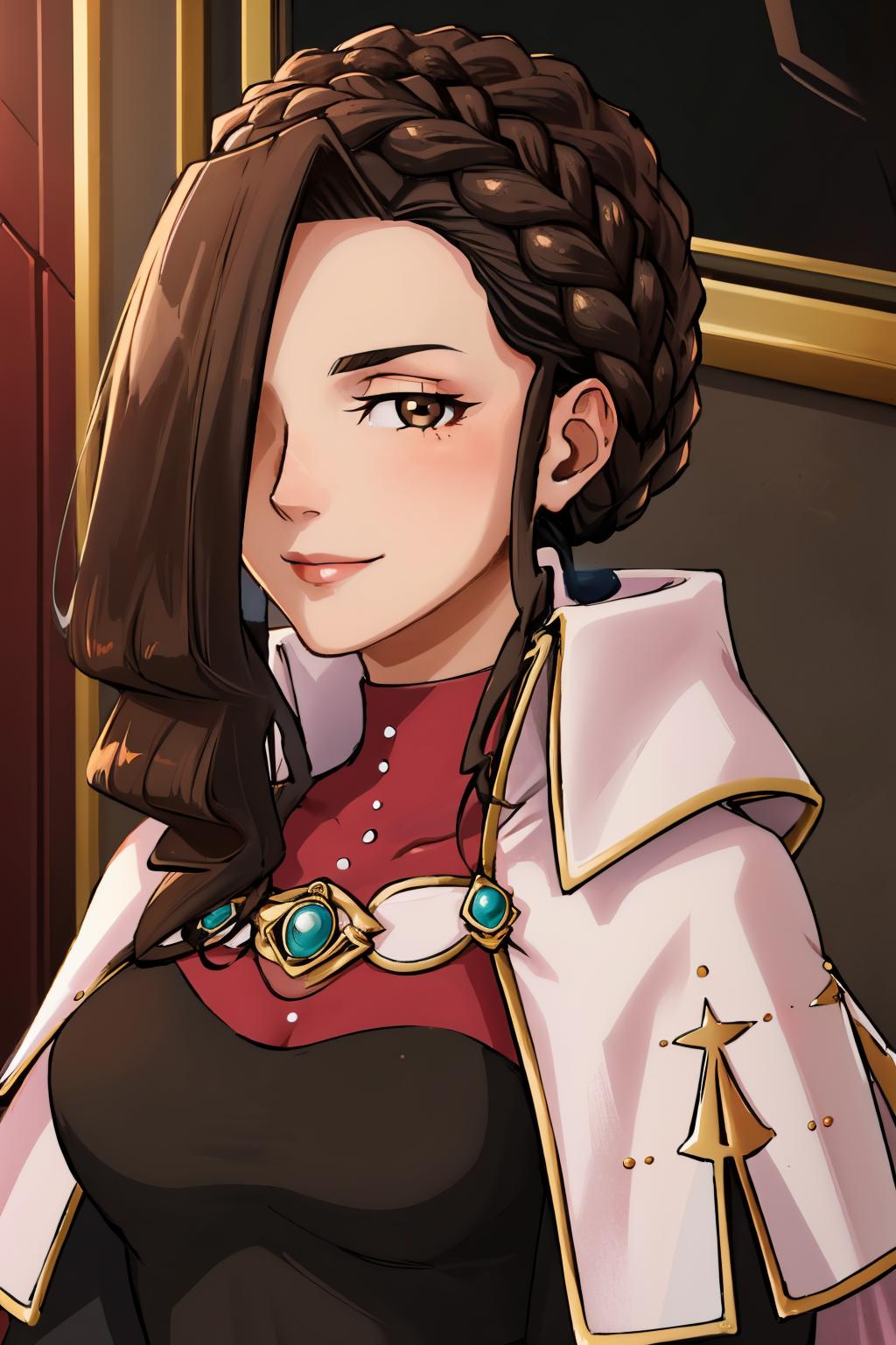 Add brown hair and brown eyes if necessary. She may hold her gavel unprompted.