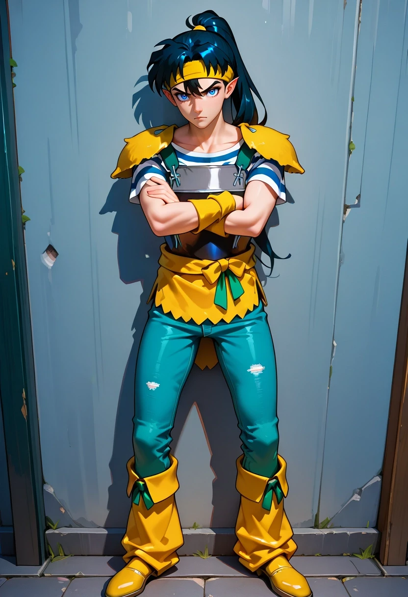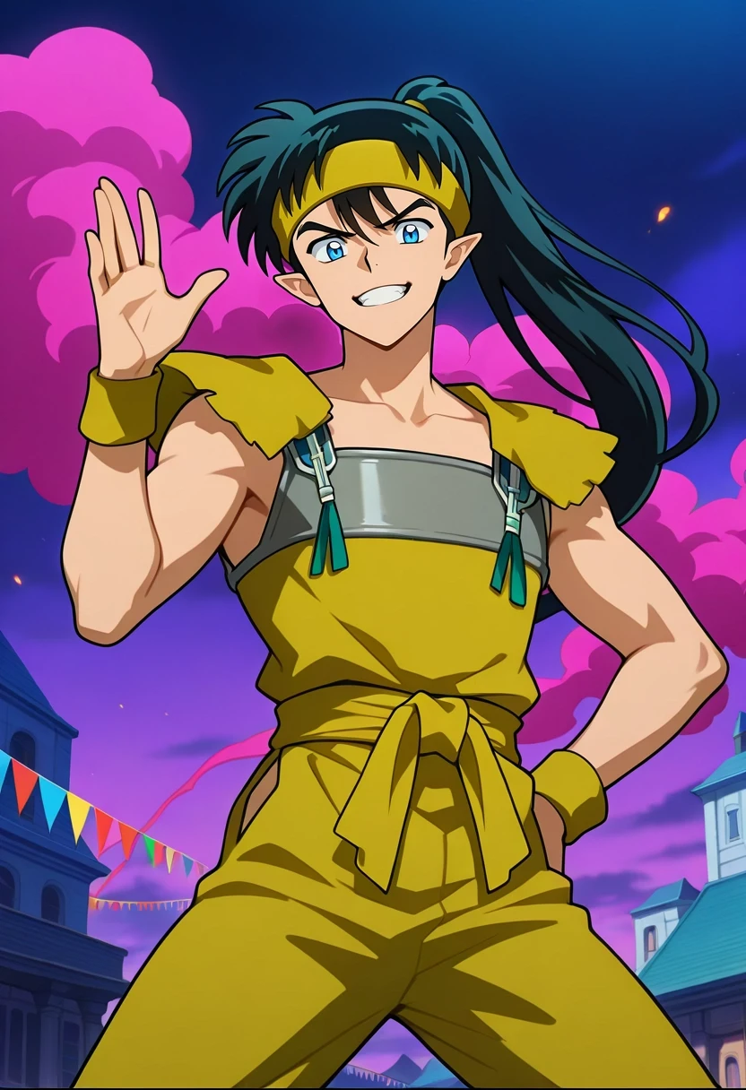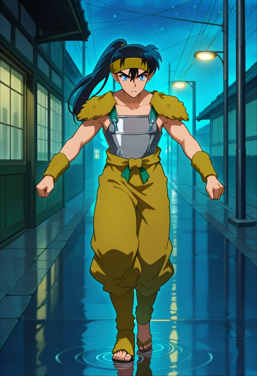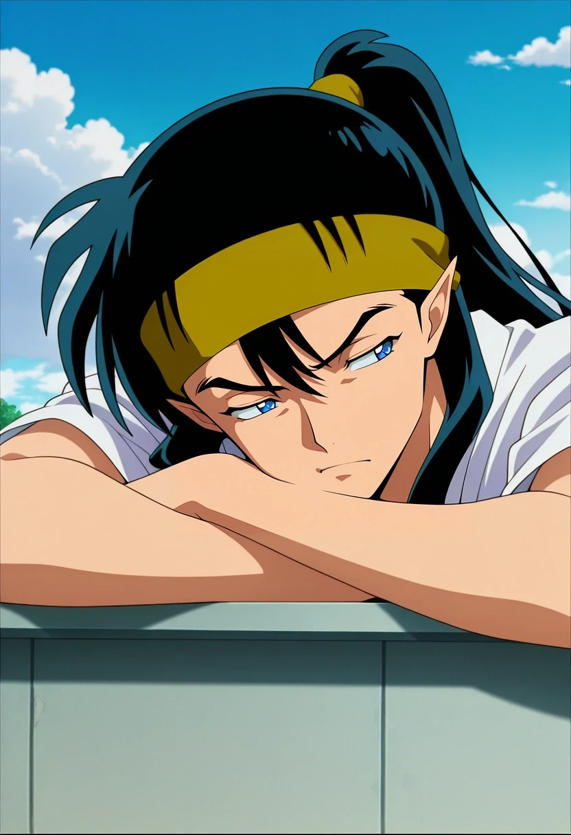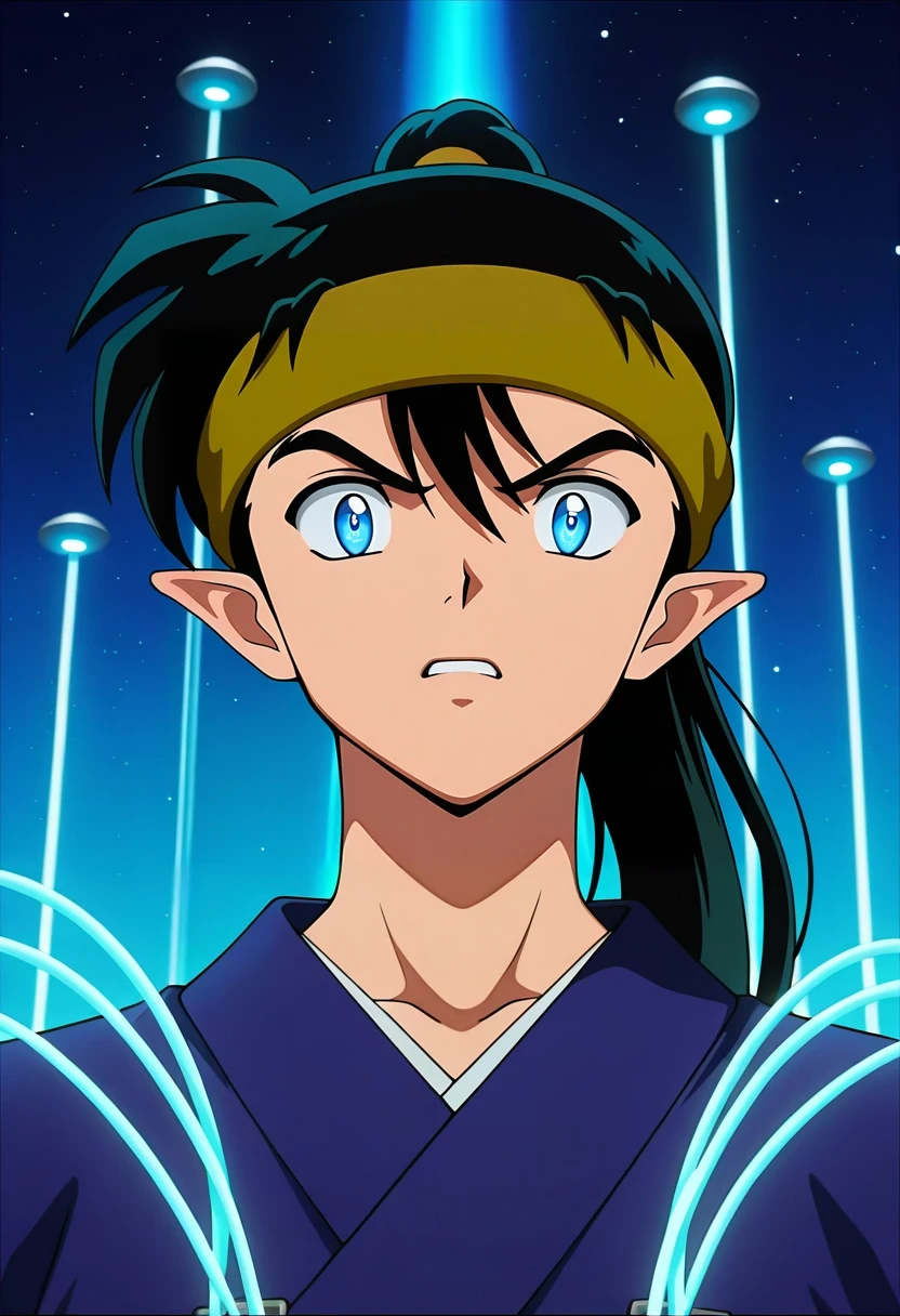 kouga_inuyasha, black hair, blue eyes, long hair, ponytail, pointy ears