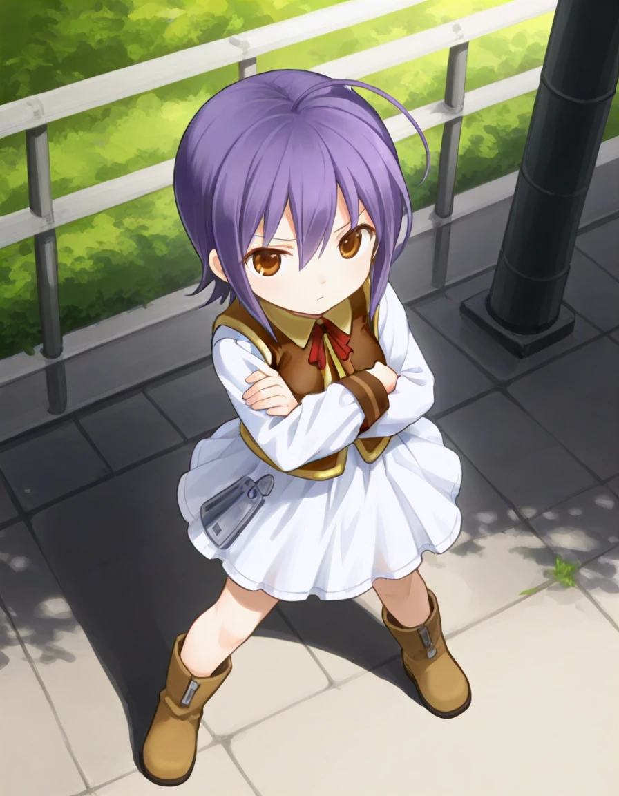 school uniform, brown vest, white dress, zipper pull taband long sleeves or puffy short sleeves